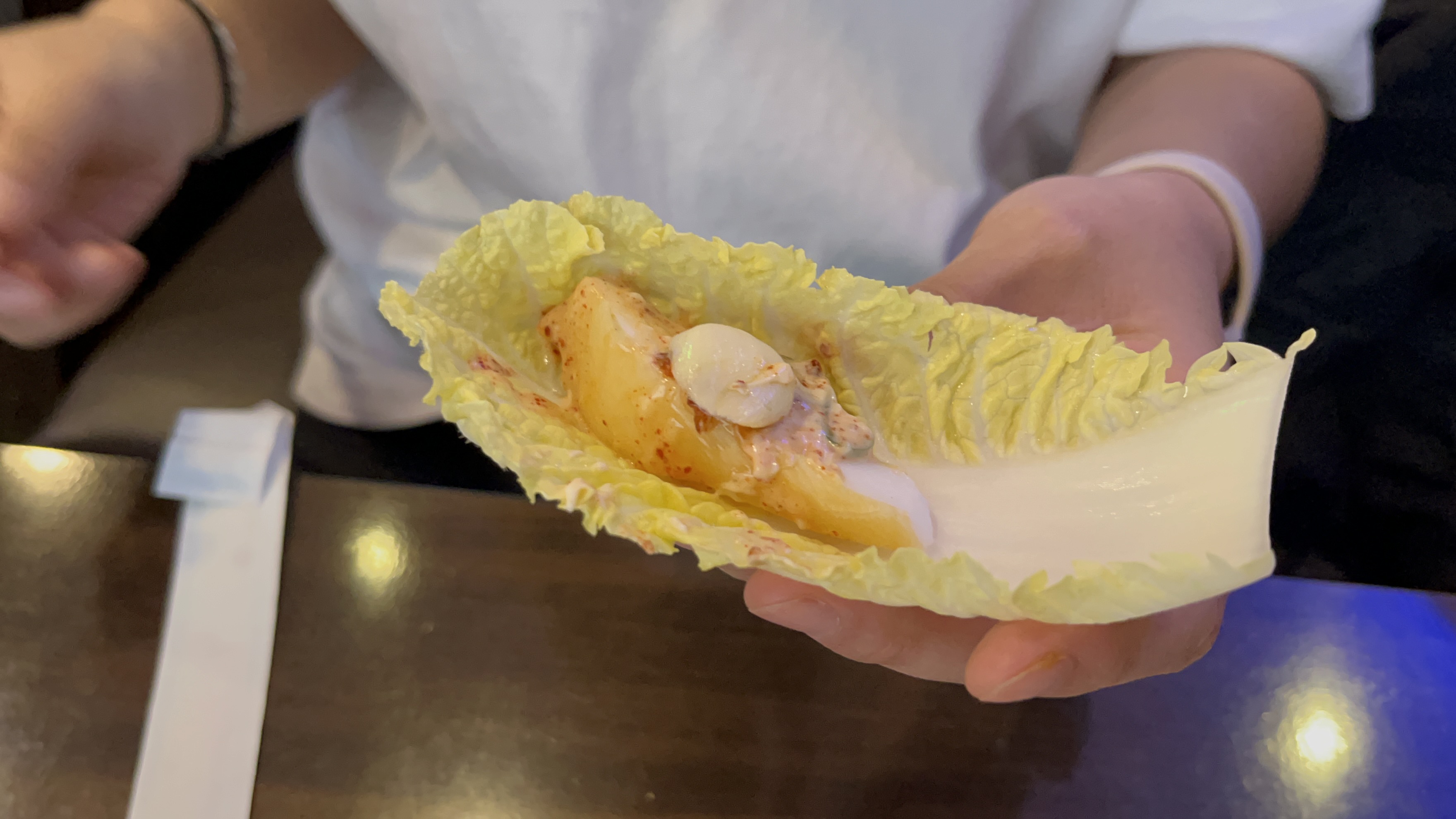 양배추에 갑오징어를 소스 찍어 딱 올려준 다음
