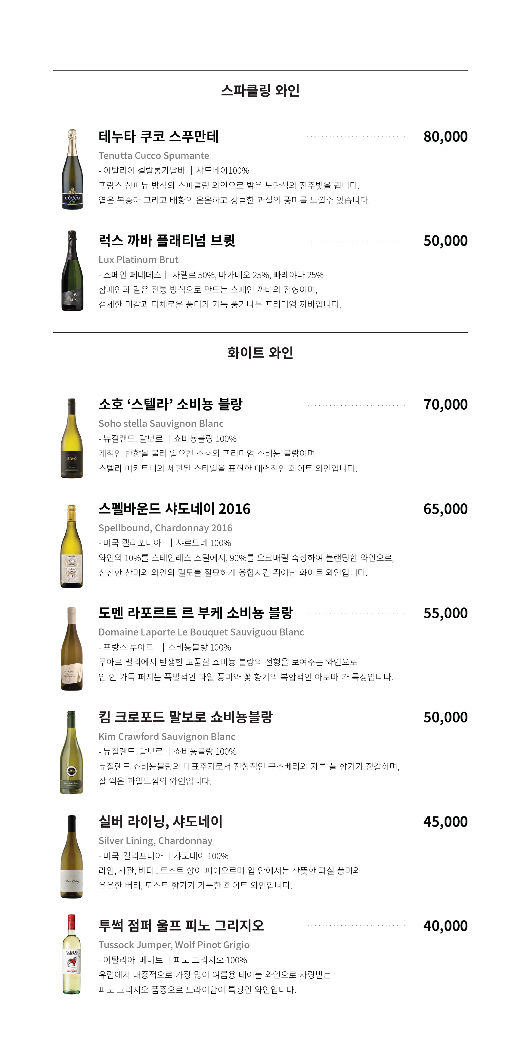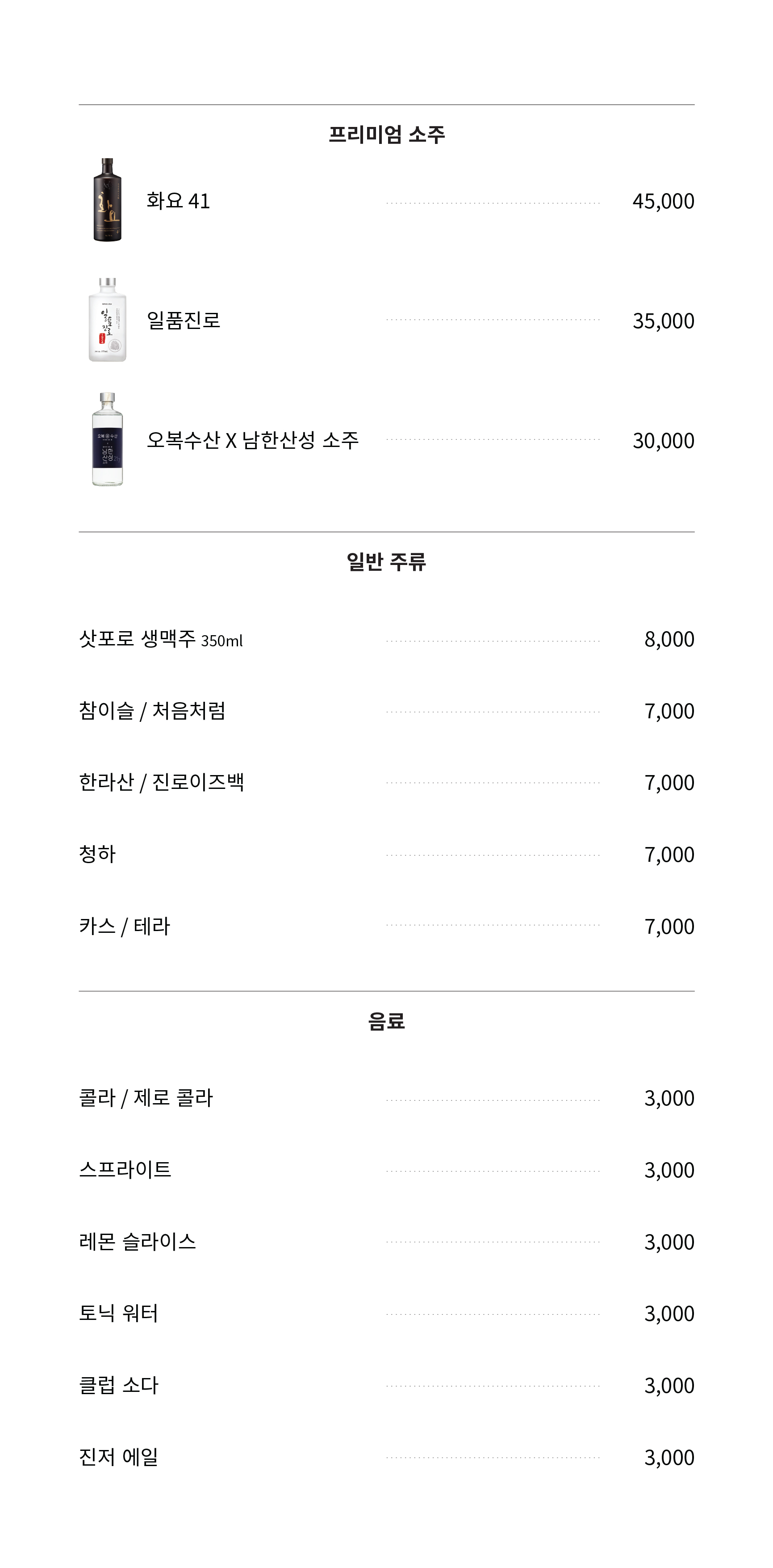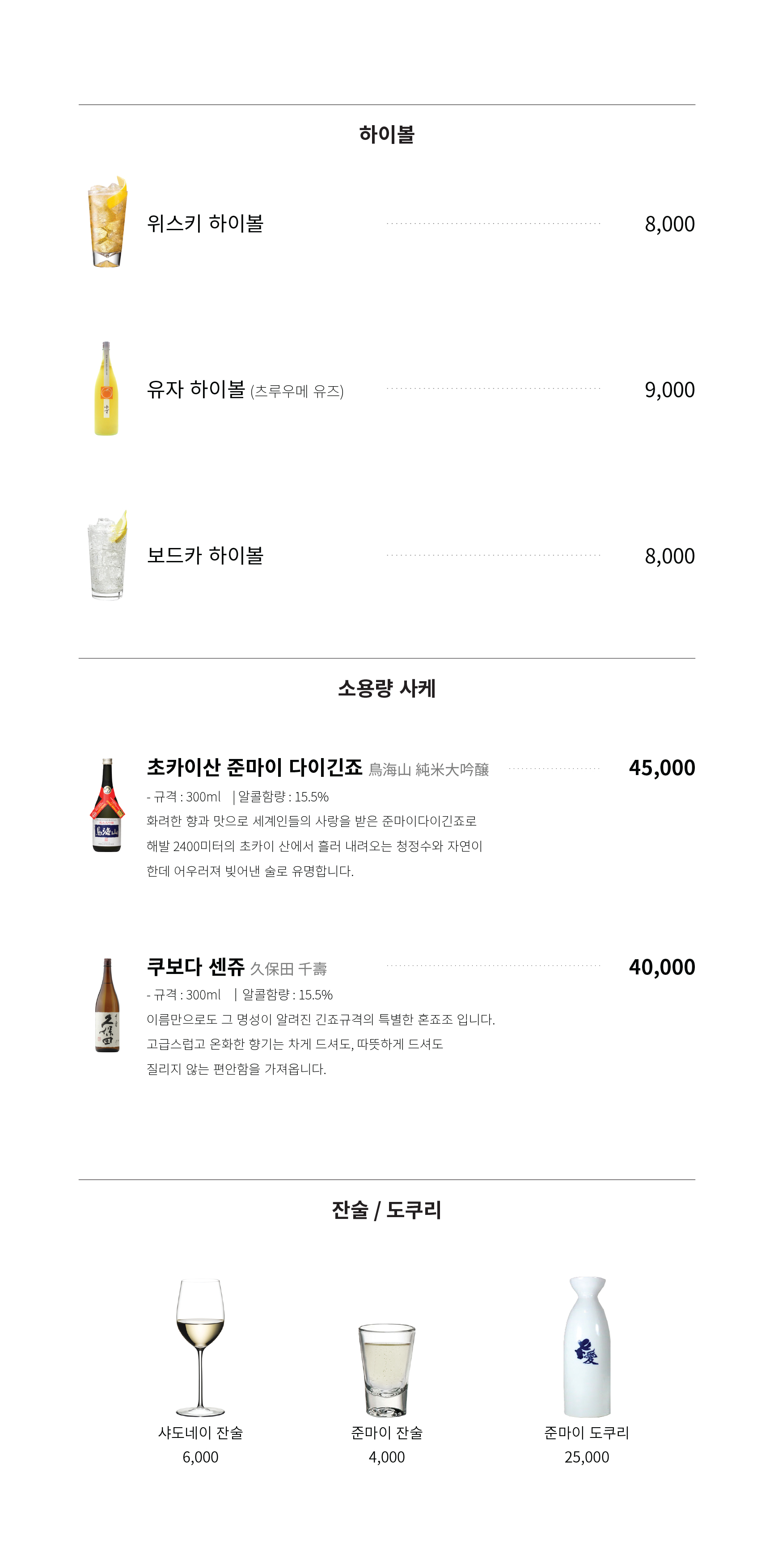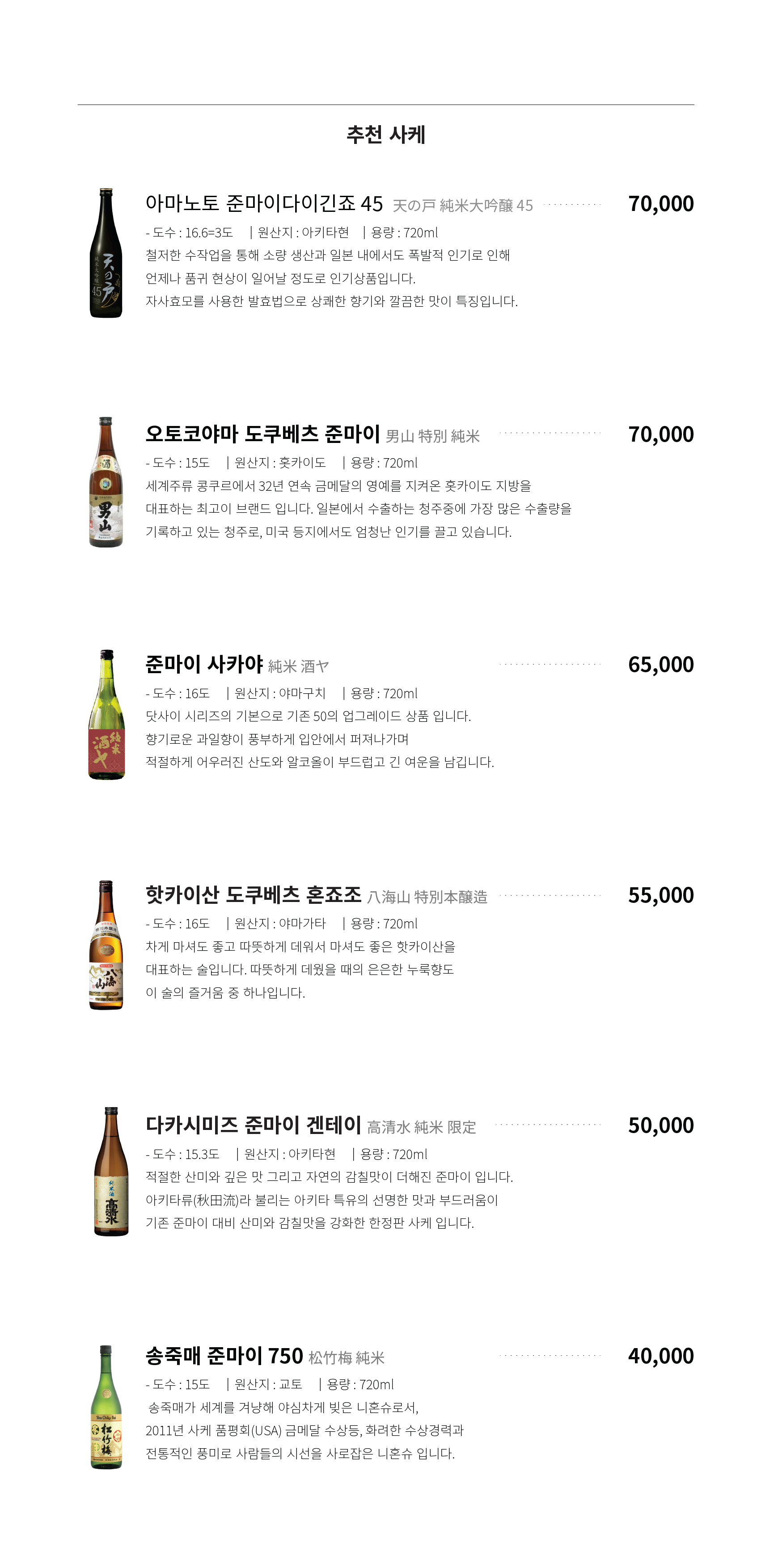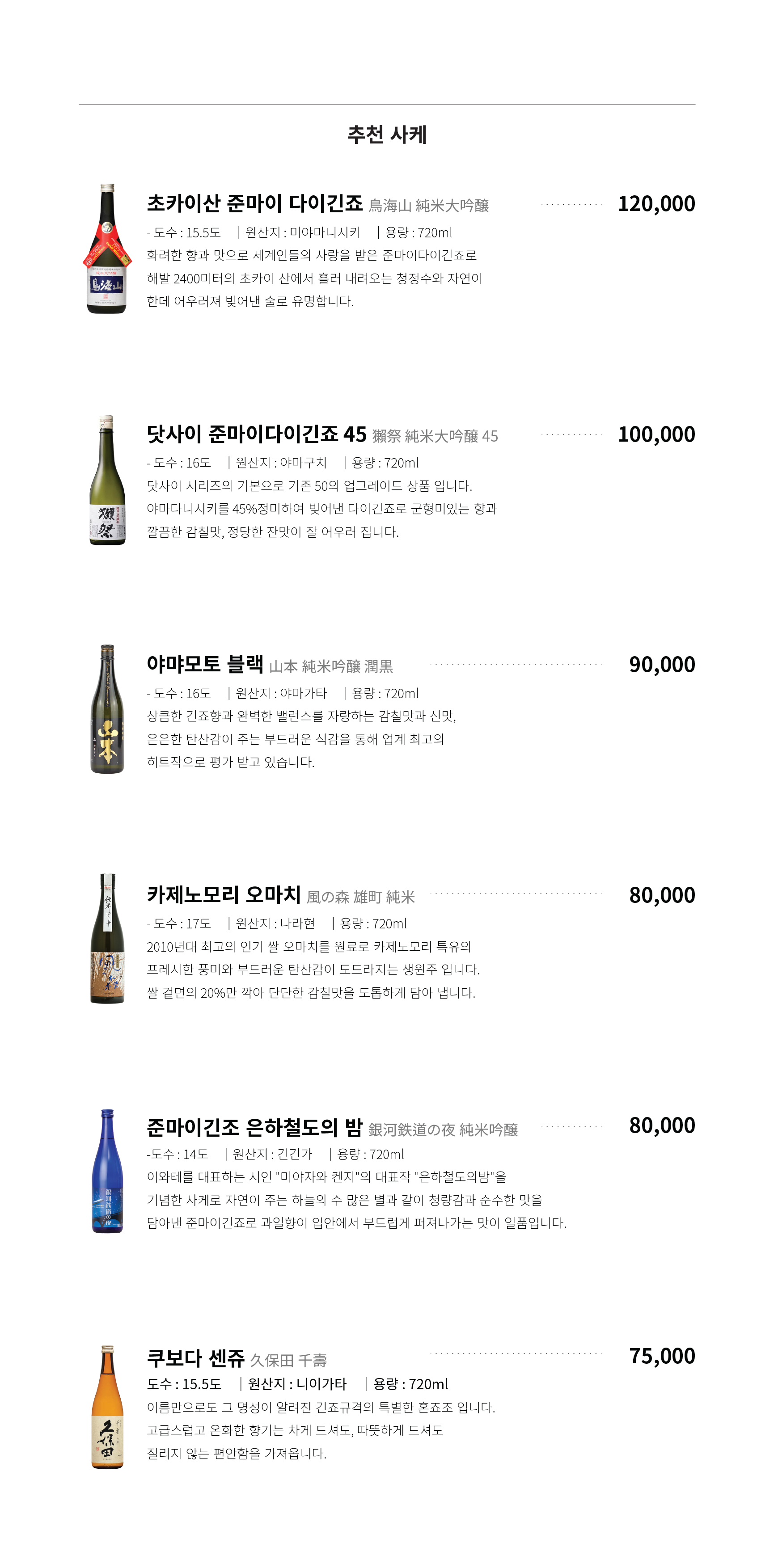 오복수산 술 와인 사케 메뉴 가격