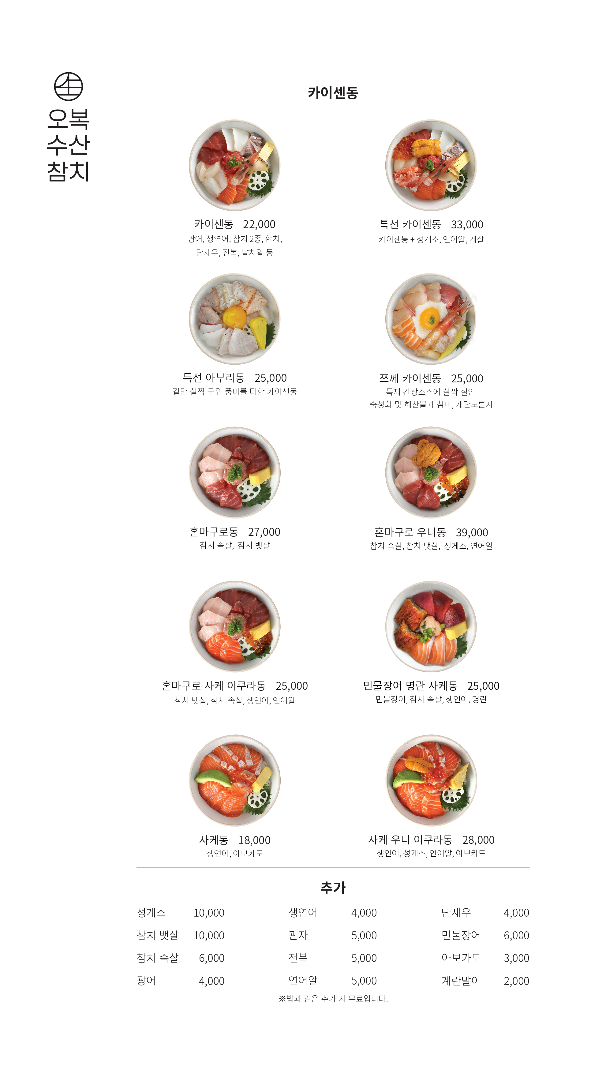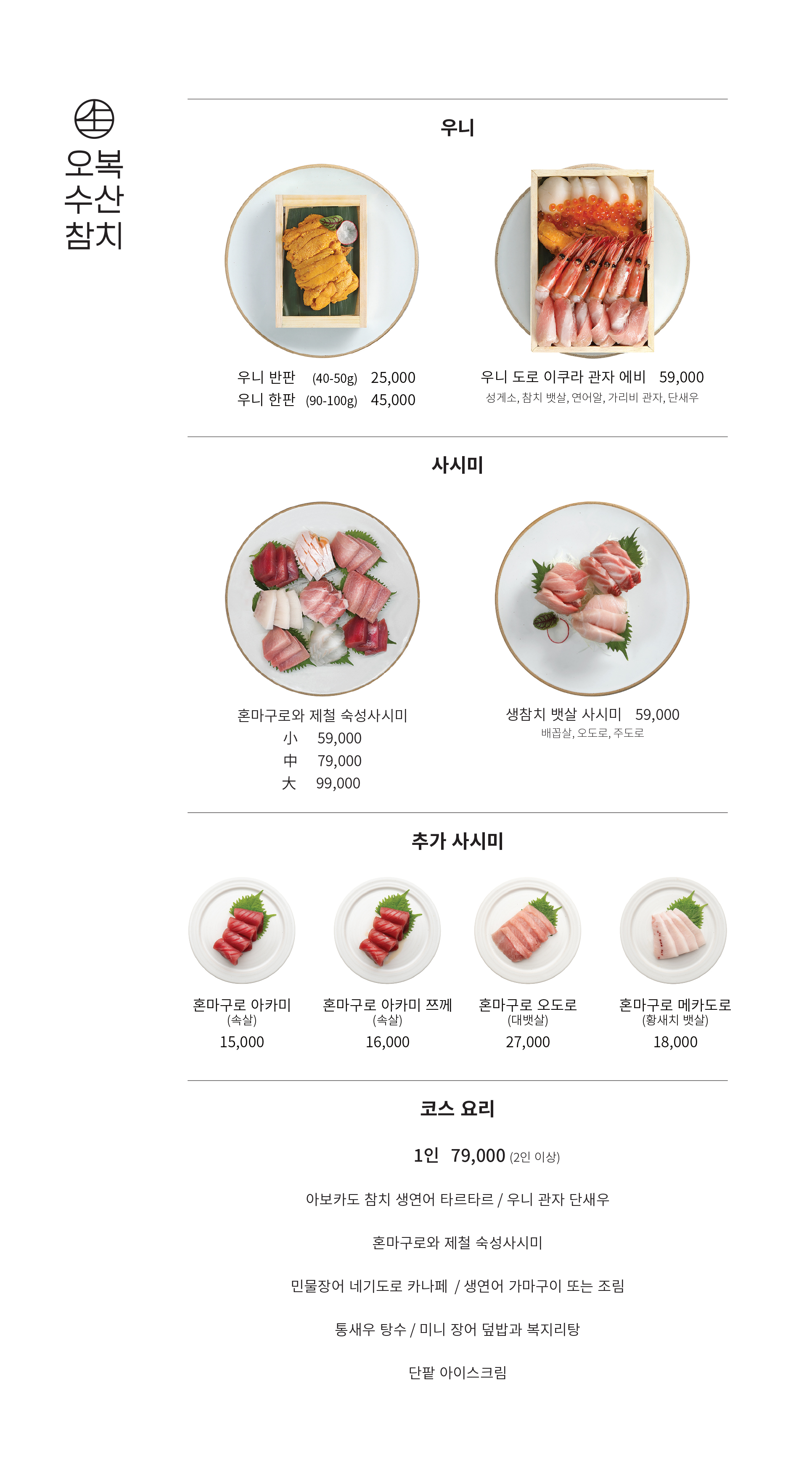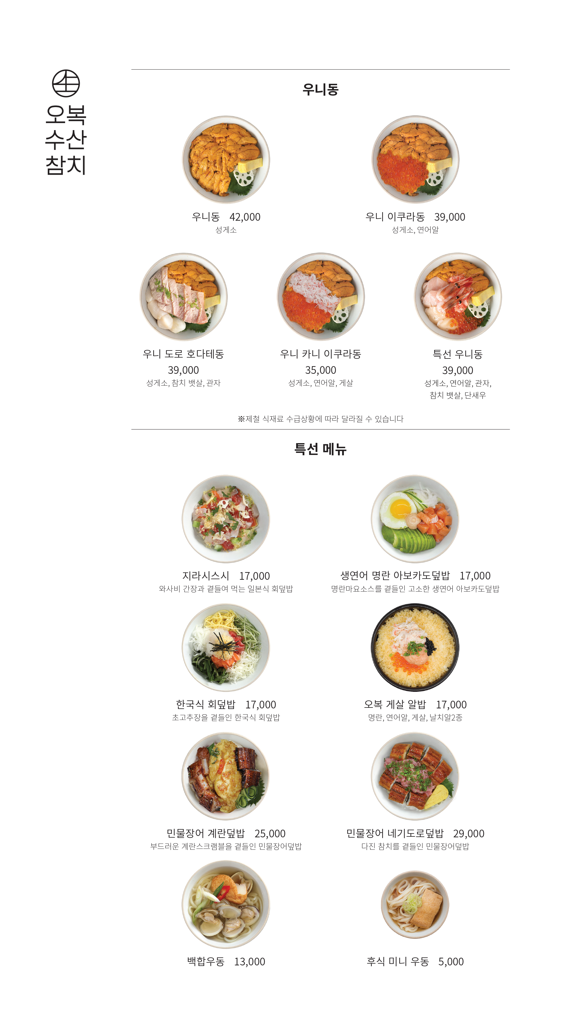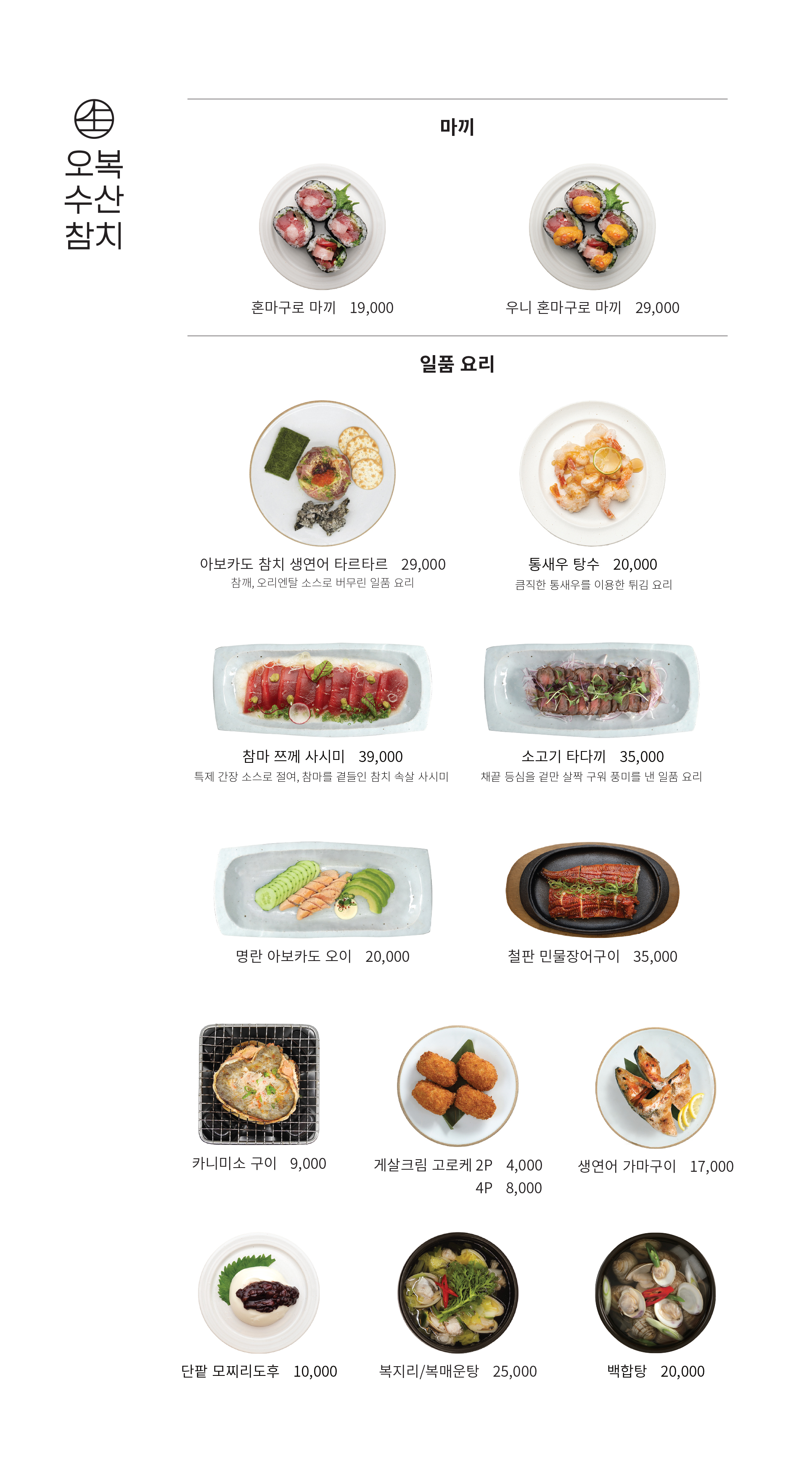 오복수산 메뉴 가격