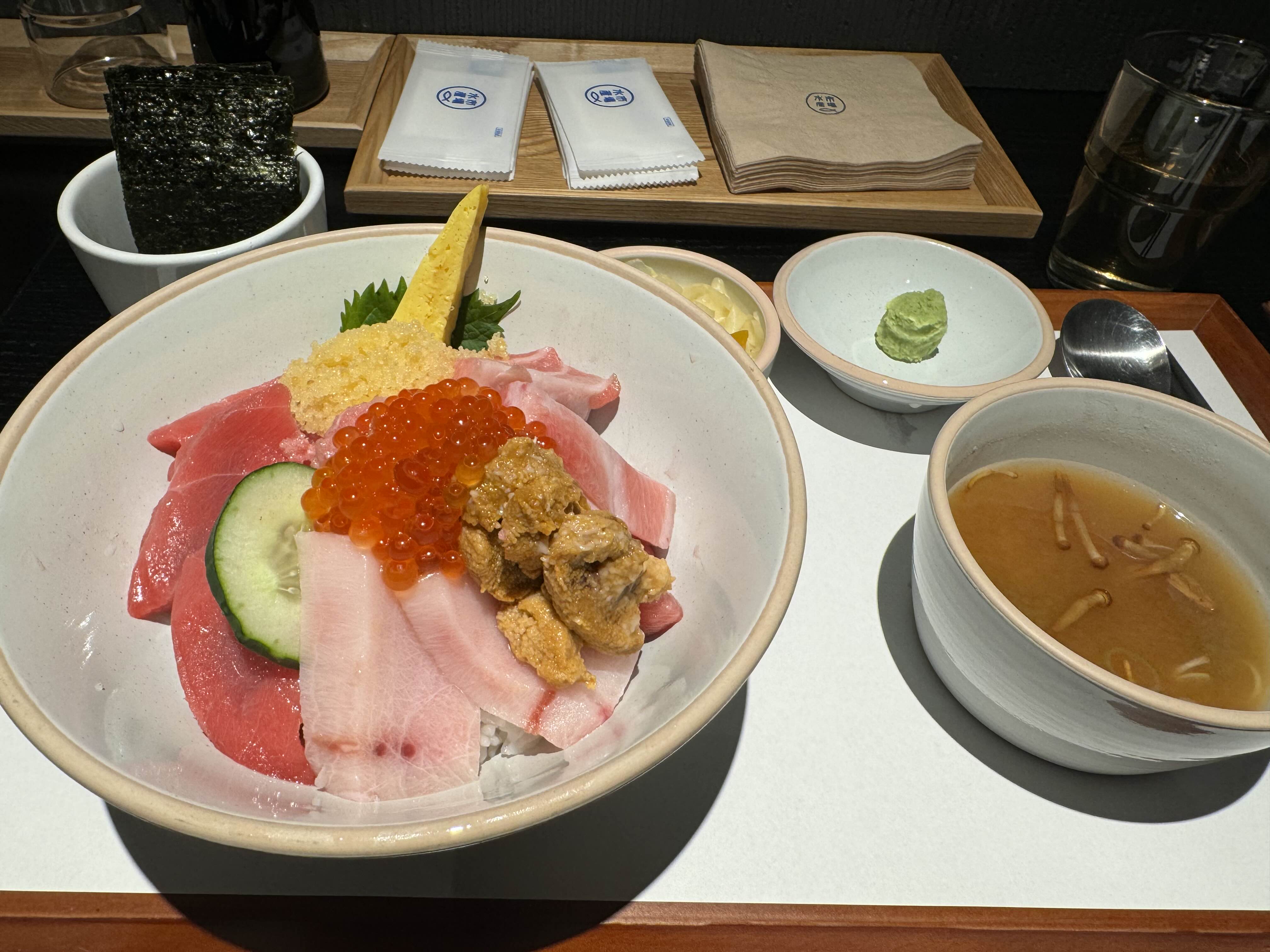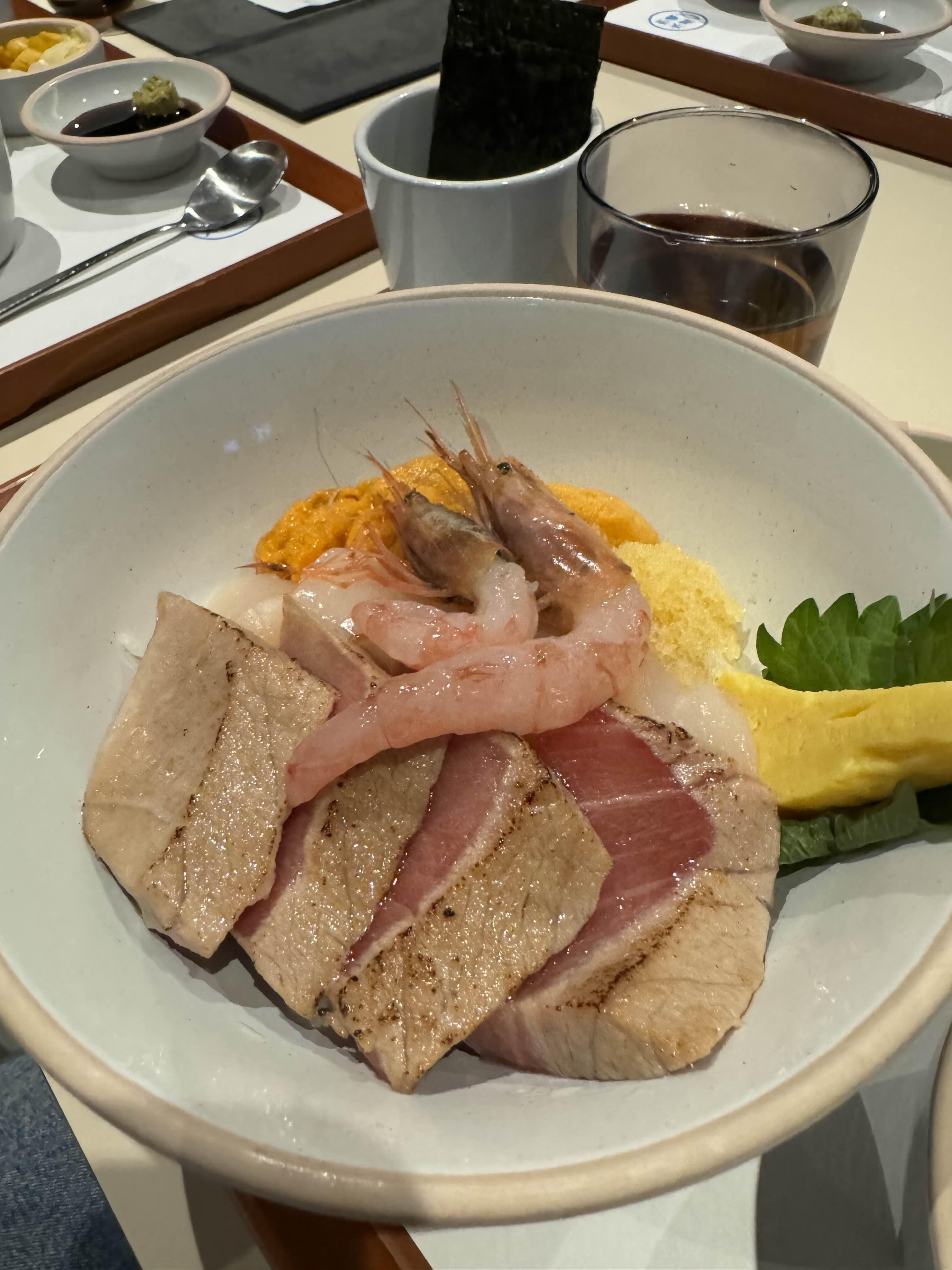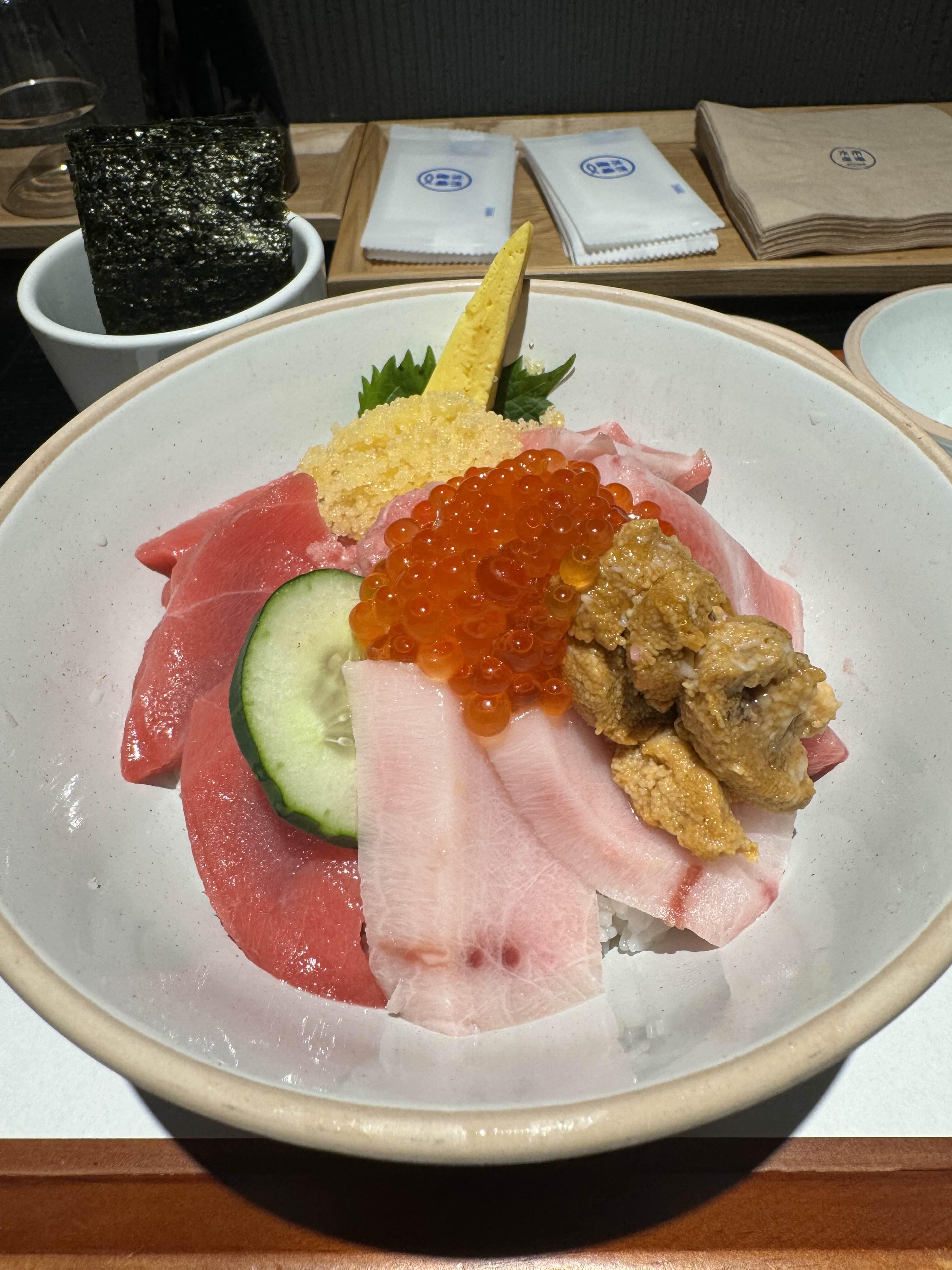 혼마구로 참다랑어 속살, 뱃살, 우니, 연어알로 구성된