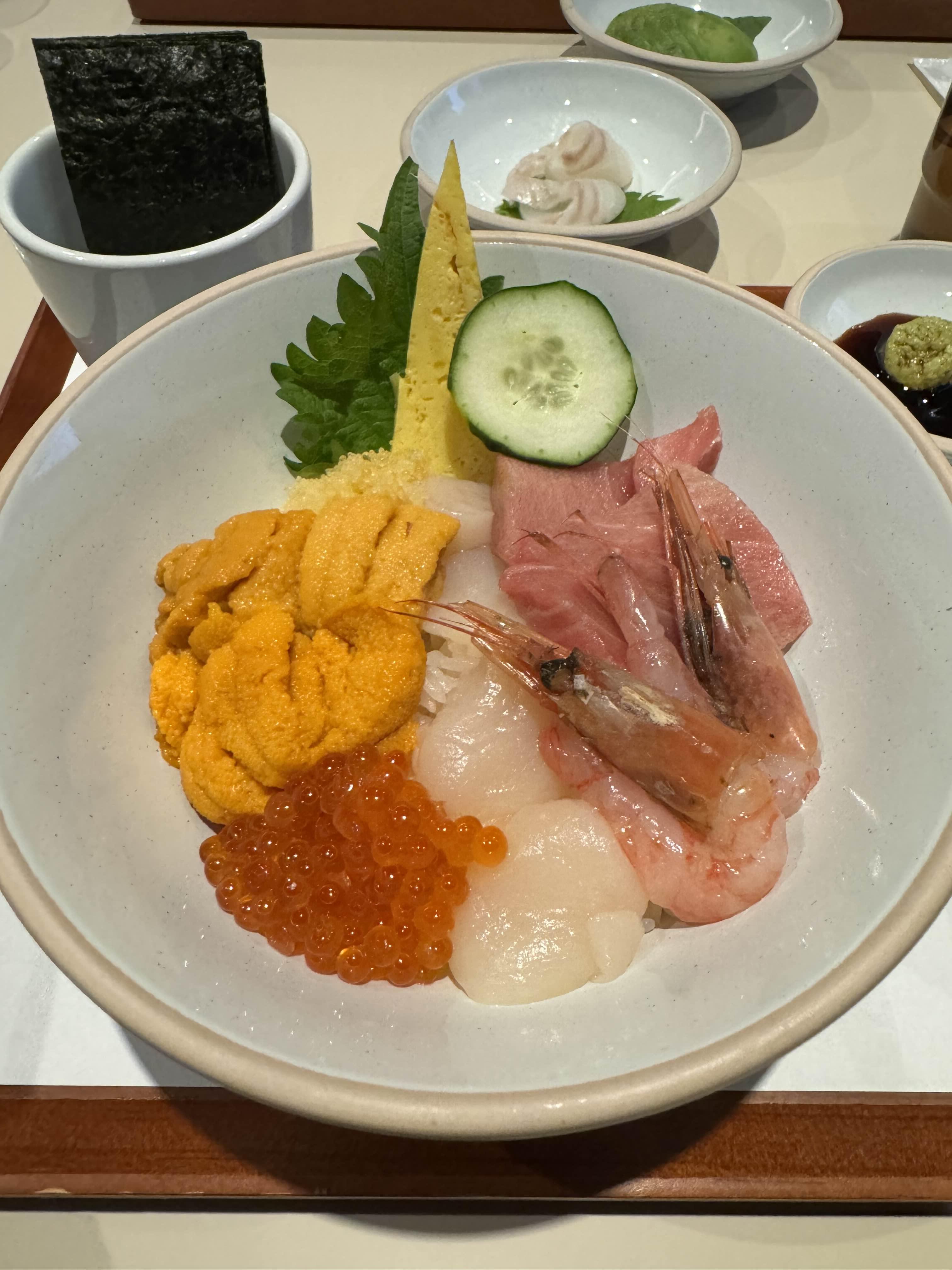 우니도로호다테동 39,000원 + 단새우 4,000원