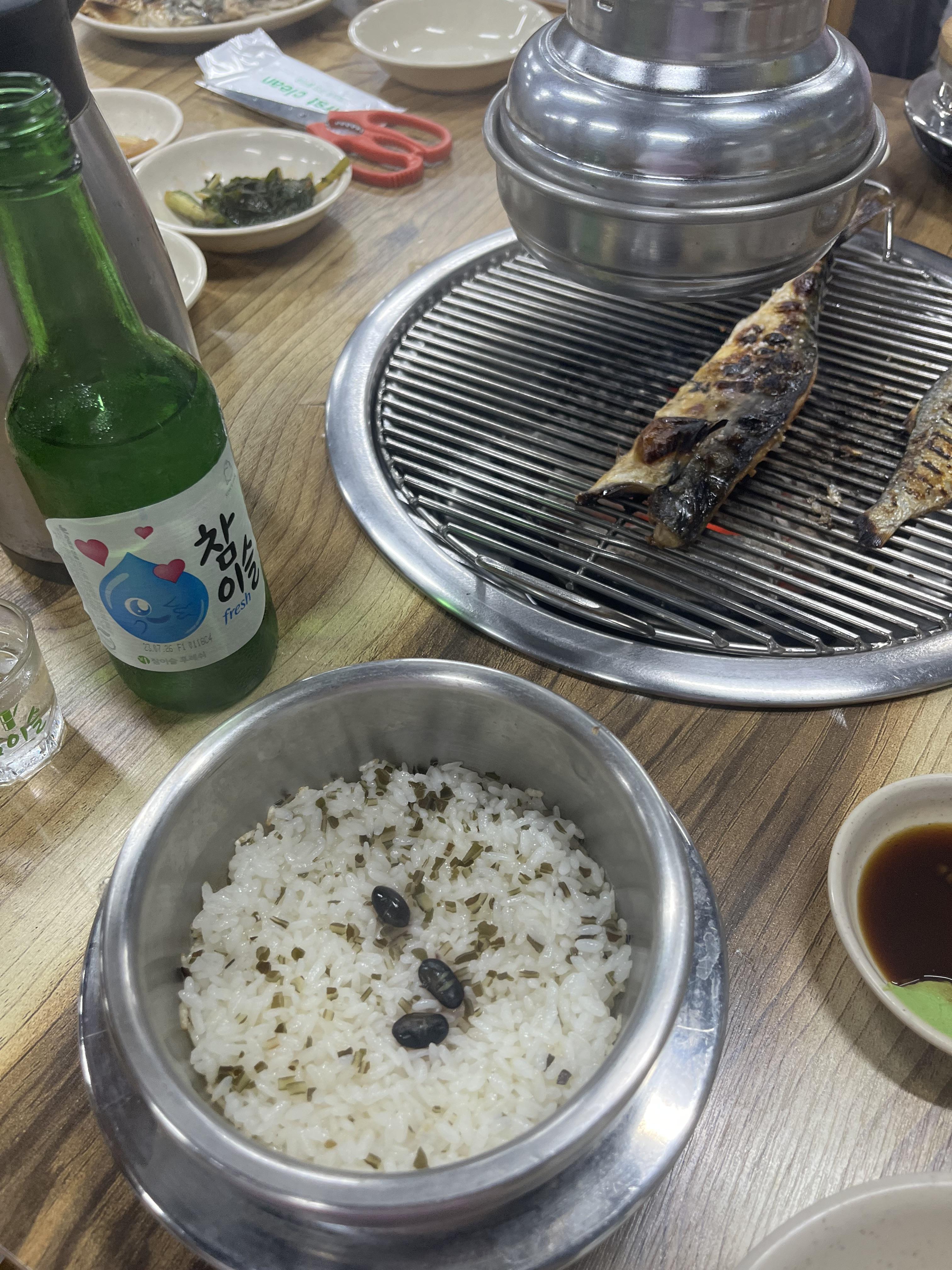 아 이런 생선구이 먹는데 소주가 빠지면안되니까-