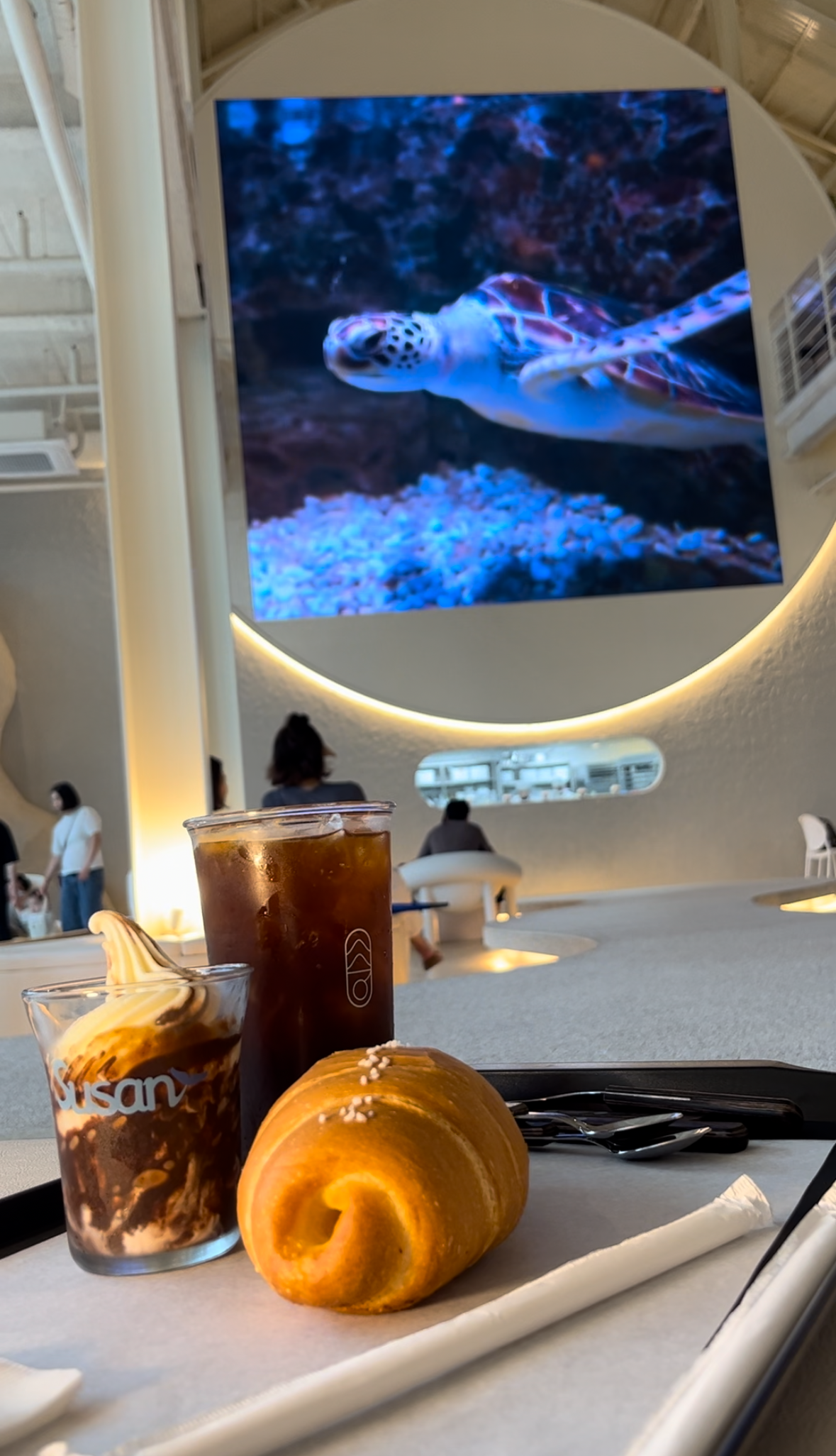 초대형 수족관을 구경하며 커피를 한 잔 즐기는 듯한 경험을 선사하는 곳이예요.