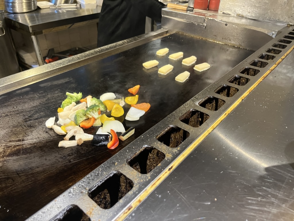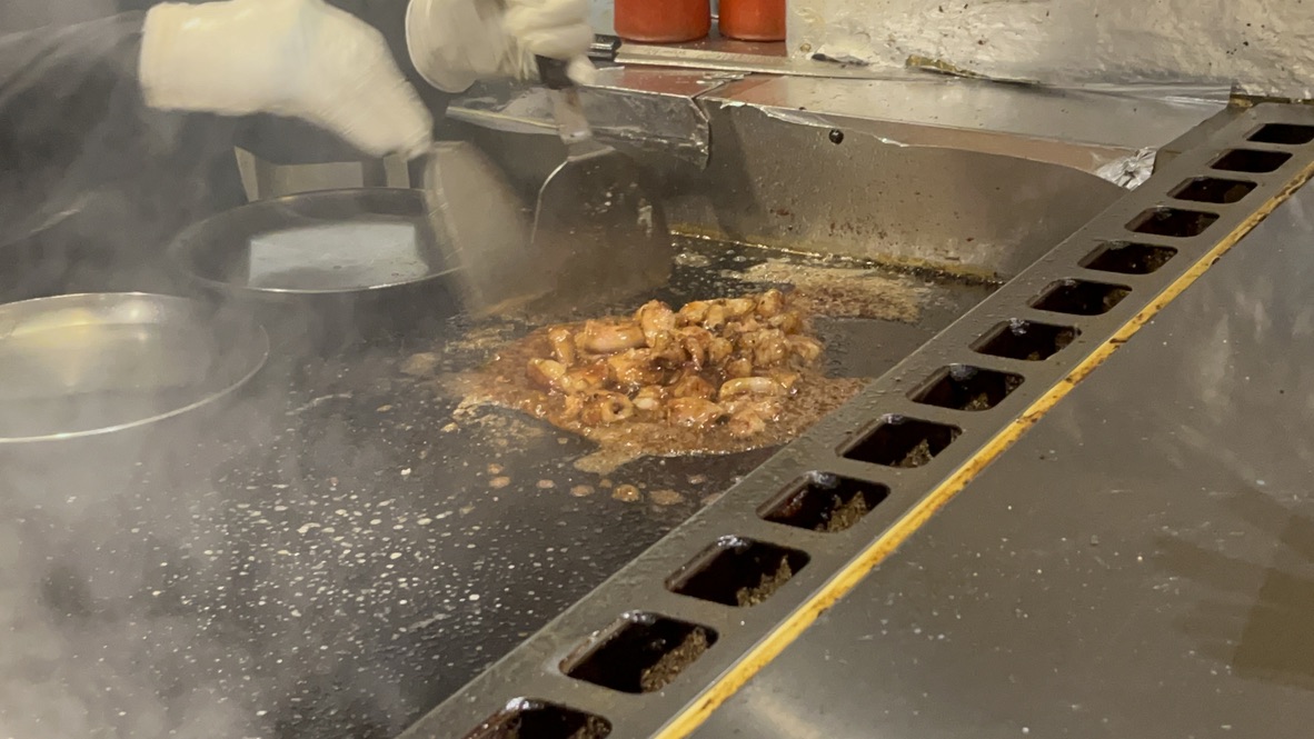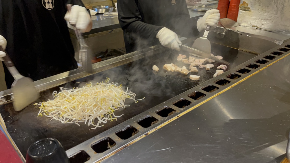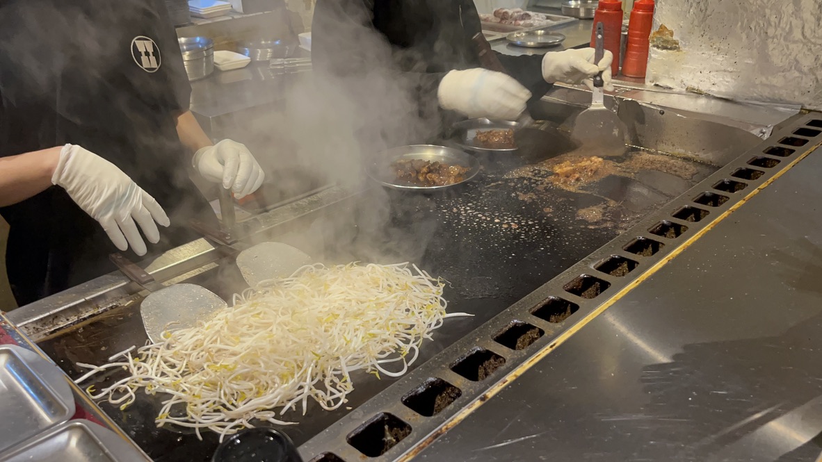 주문과 동시에 자리 바로 앞에서 철판 요리를 시작합니다.