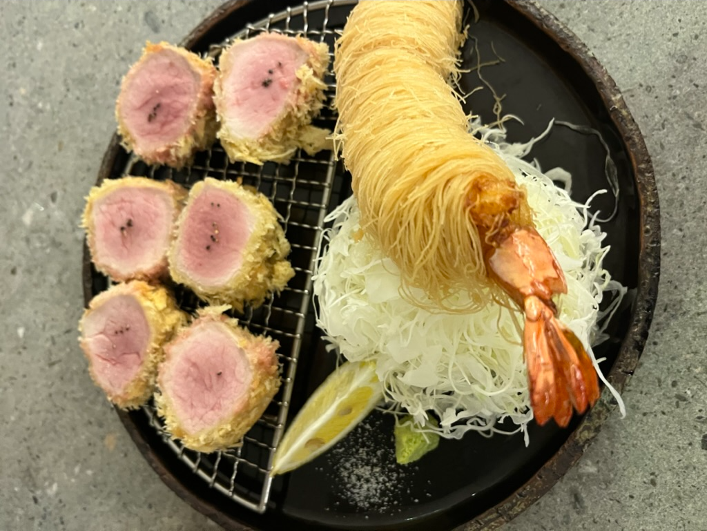저 새우튀김 튀김 옷이 얇게 면처럼 되어있어서 식감이 엄청 특이했다.