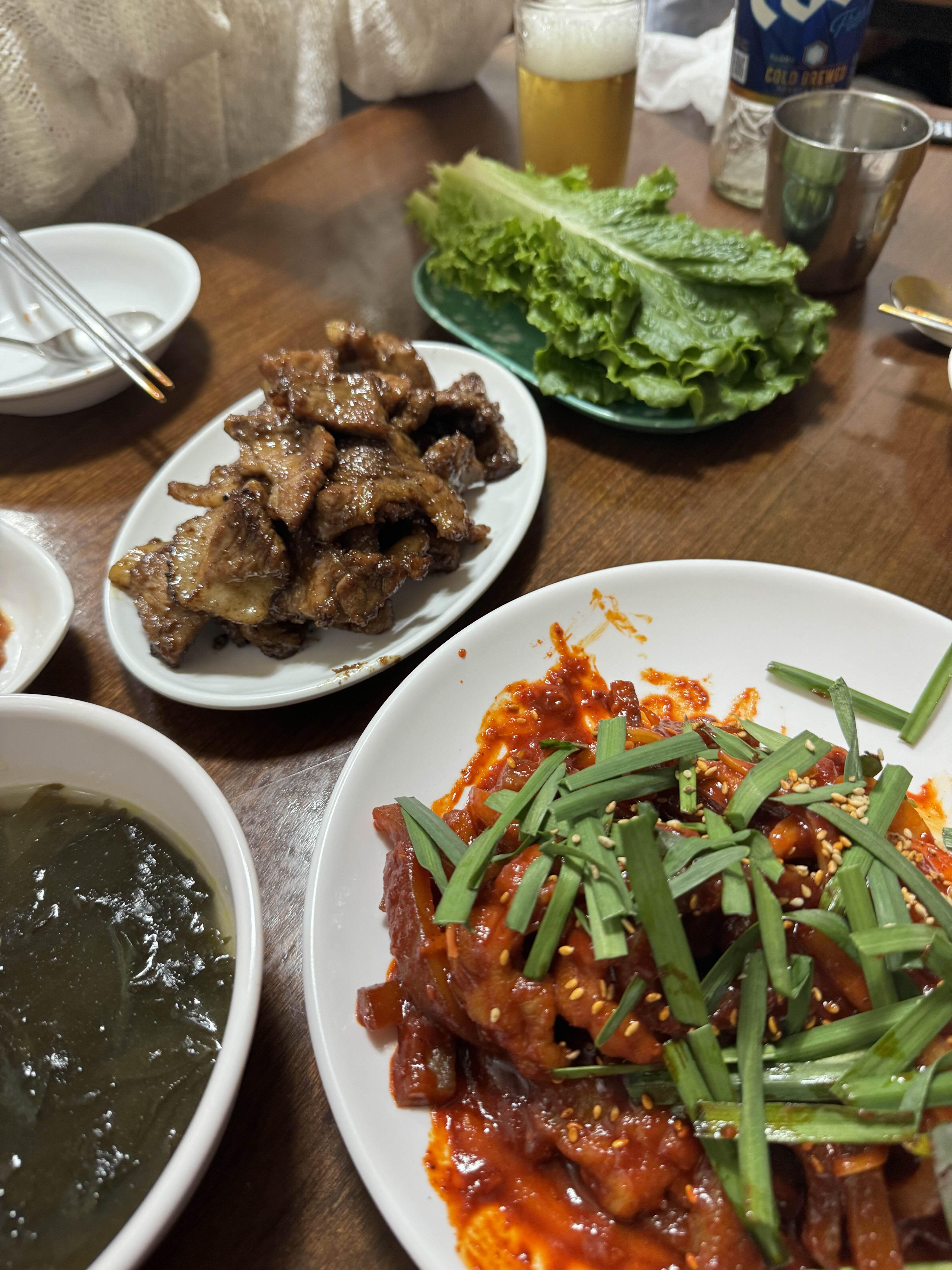 돼지갈비 쌈 하나 먹고 소맥한잔하고