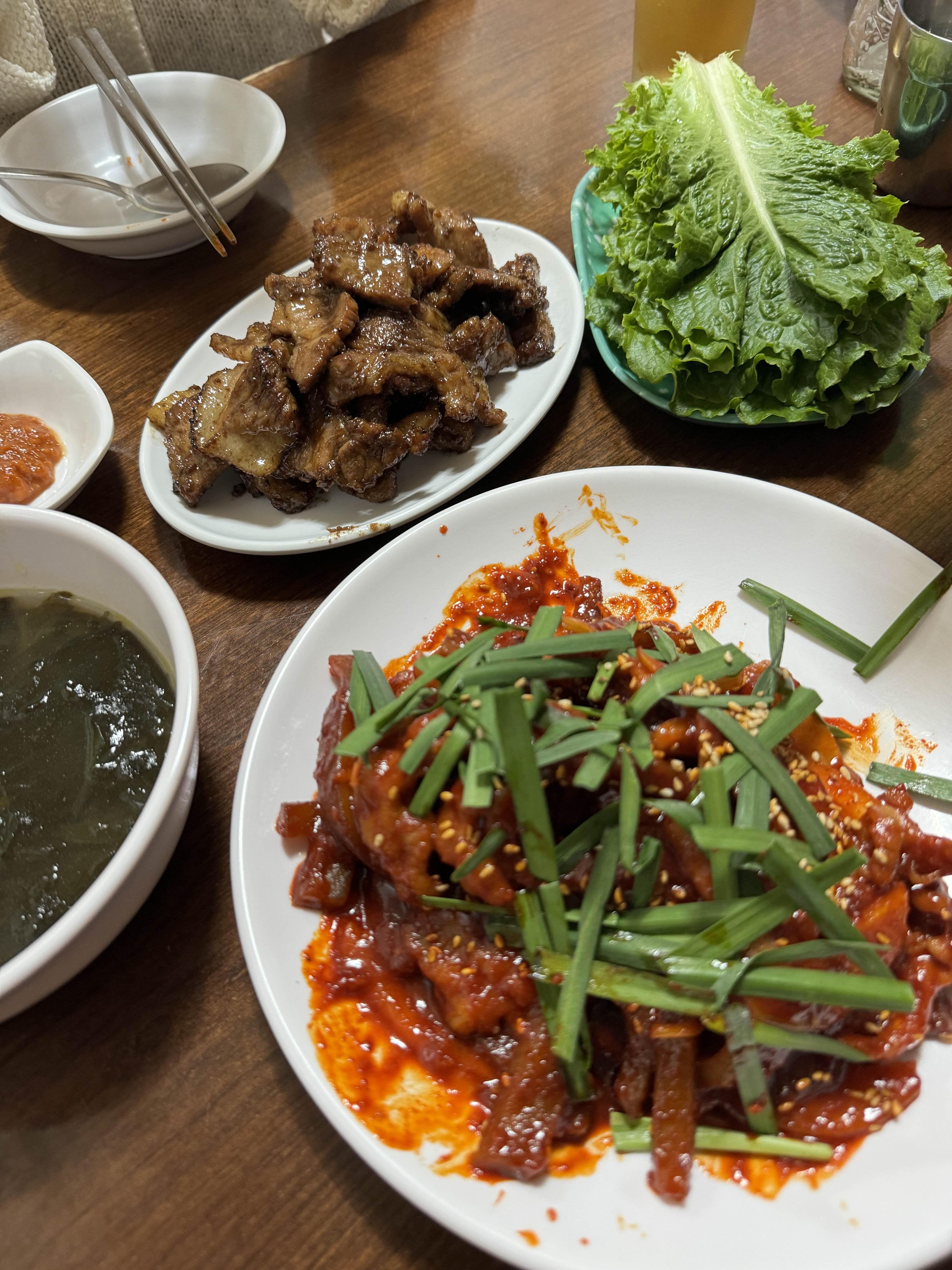 돼지갈비 쌈 하나 먹고 소맥한잔하고