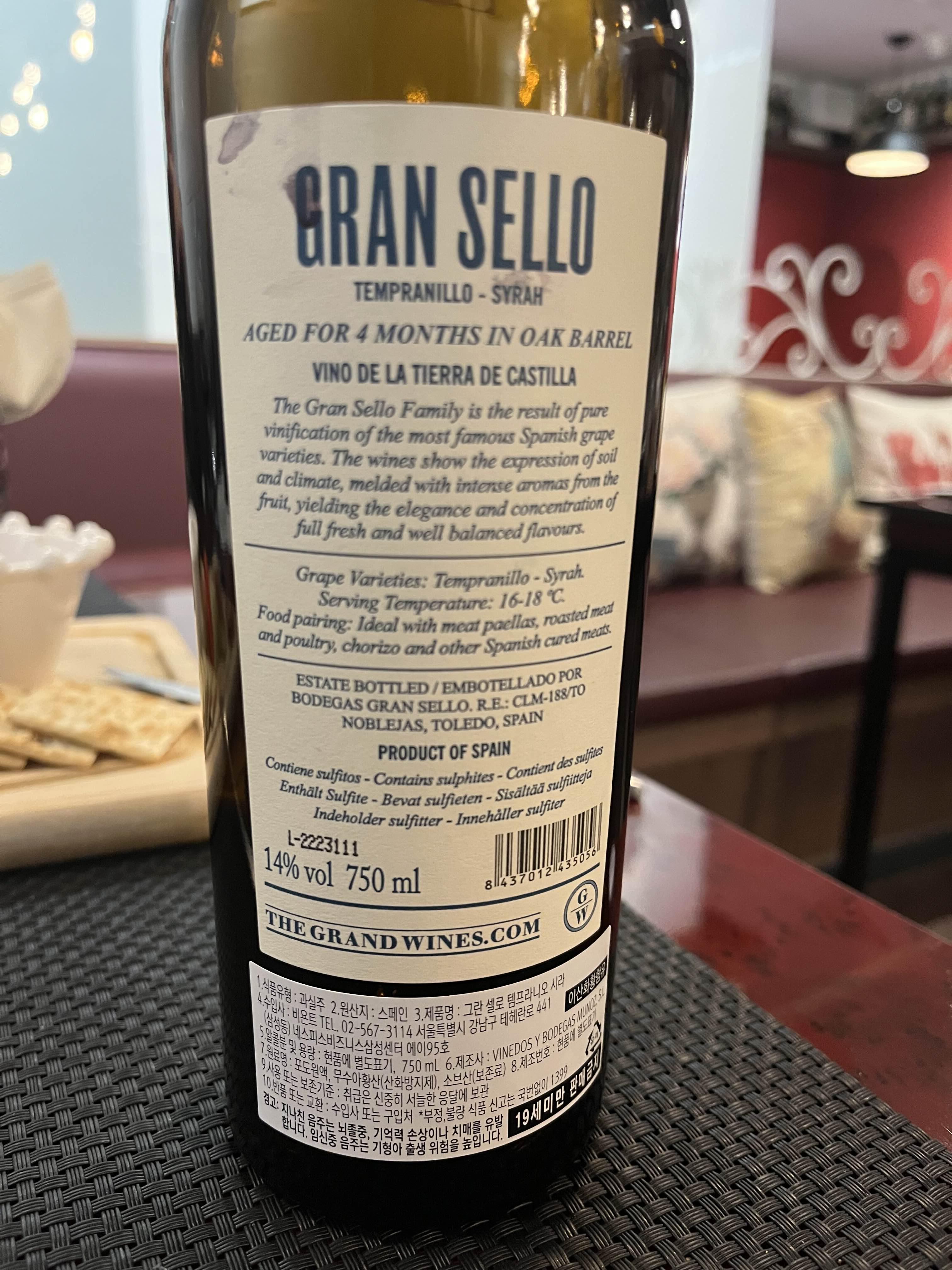 그랑 셀로 템프라니요-시라 데일리 와인으로 강력 추천합니다! 꼭 한 번 드셔보세요!!