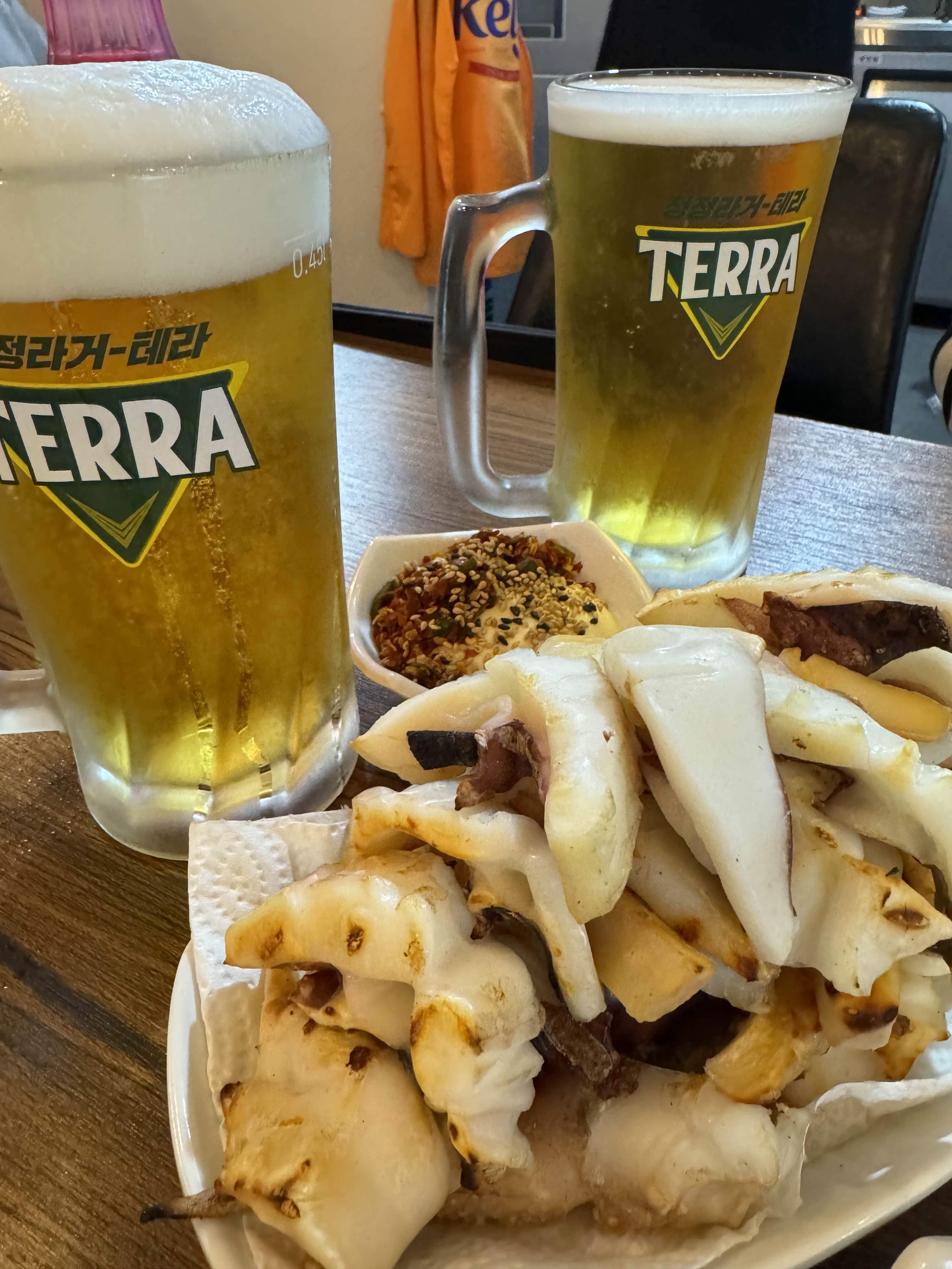 생맥주랑 갑오징어 궁합은 찰떡이었어요!!!
