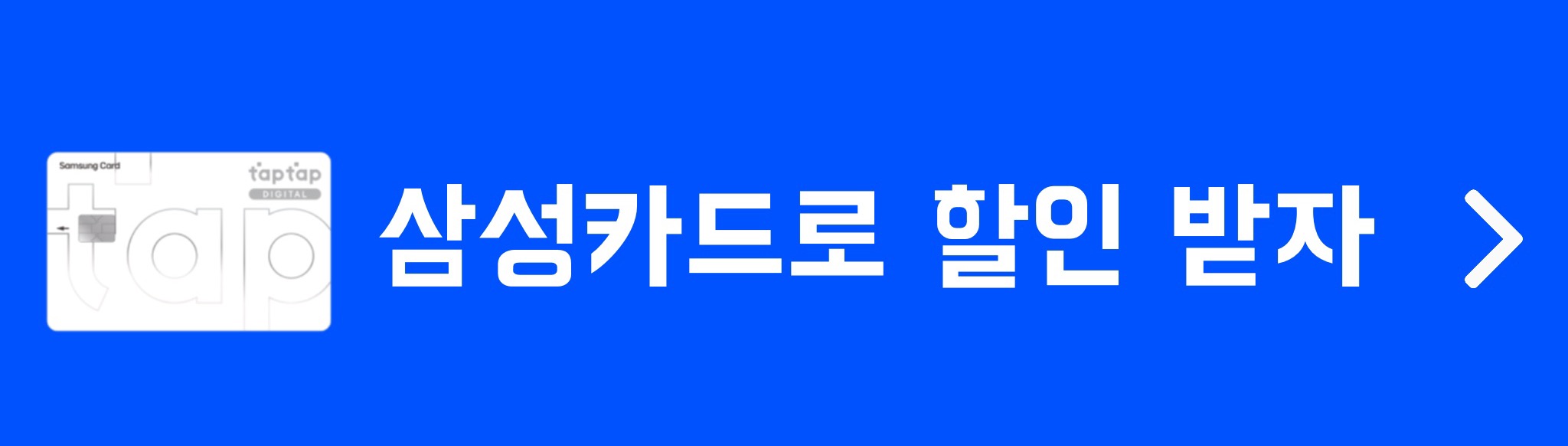 - 탭탭디지털 삼성카드: 50%, 전월 실적 30만 5천원, 60만 7천원, 90만 1만원 할인