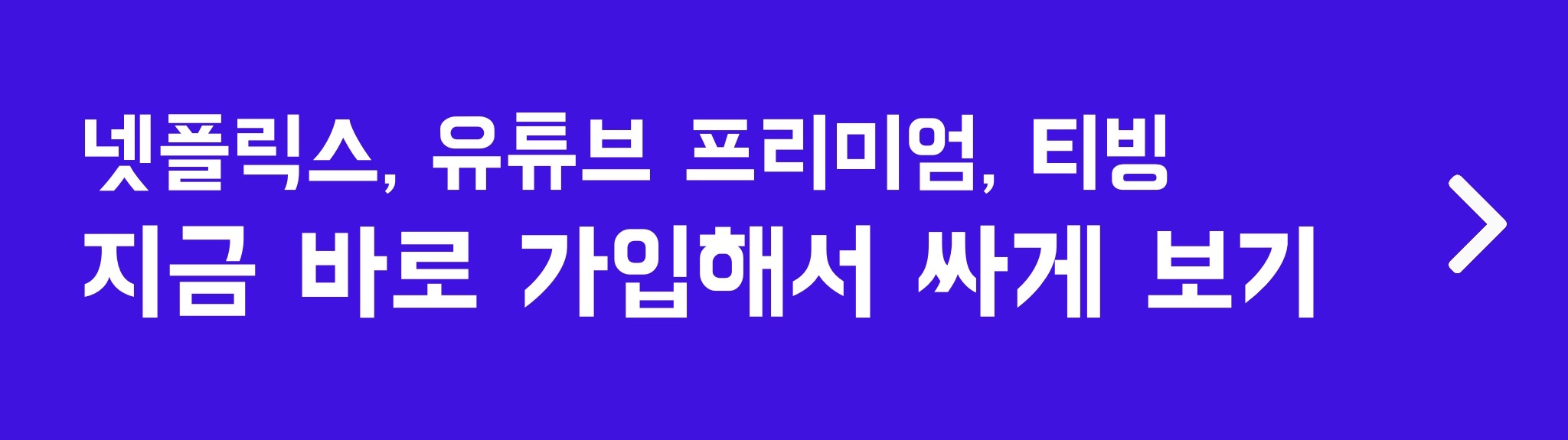 - 유튜브, 넷플릭스, 왓챠, 멜론, 지니, 리디북스 30% 할인 (실적별 최대 5천 / 8천원 할인)