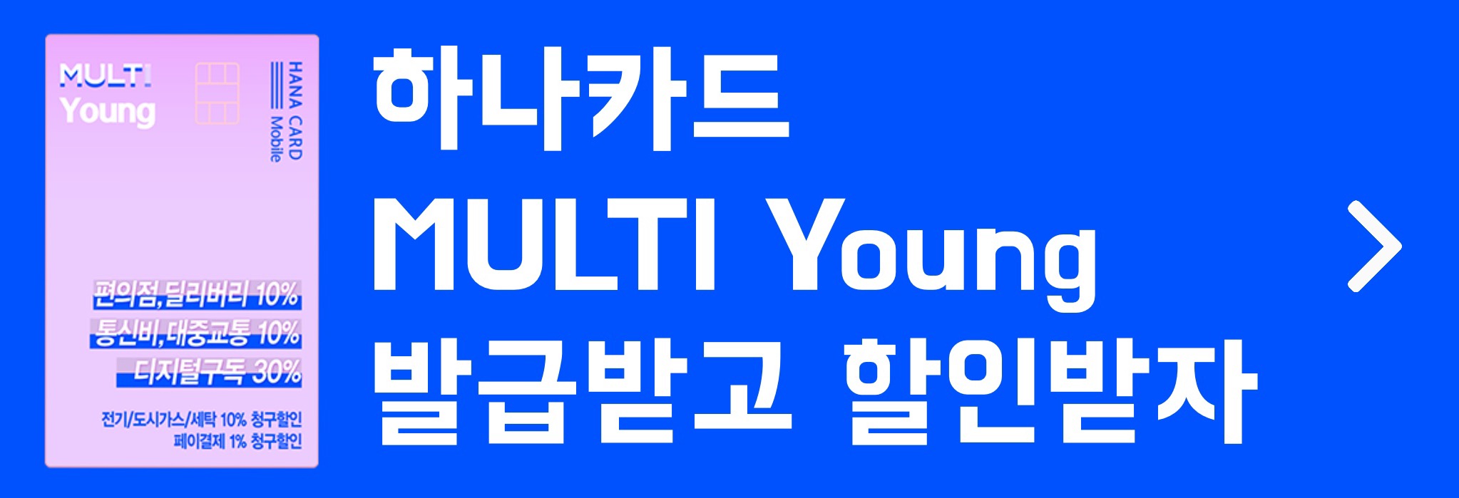 • MUITI Young 하나카드: 30%, 전월 실적 기준 2천원, 6천원, 1만원 할인