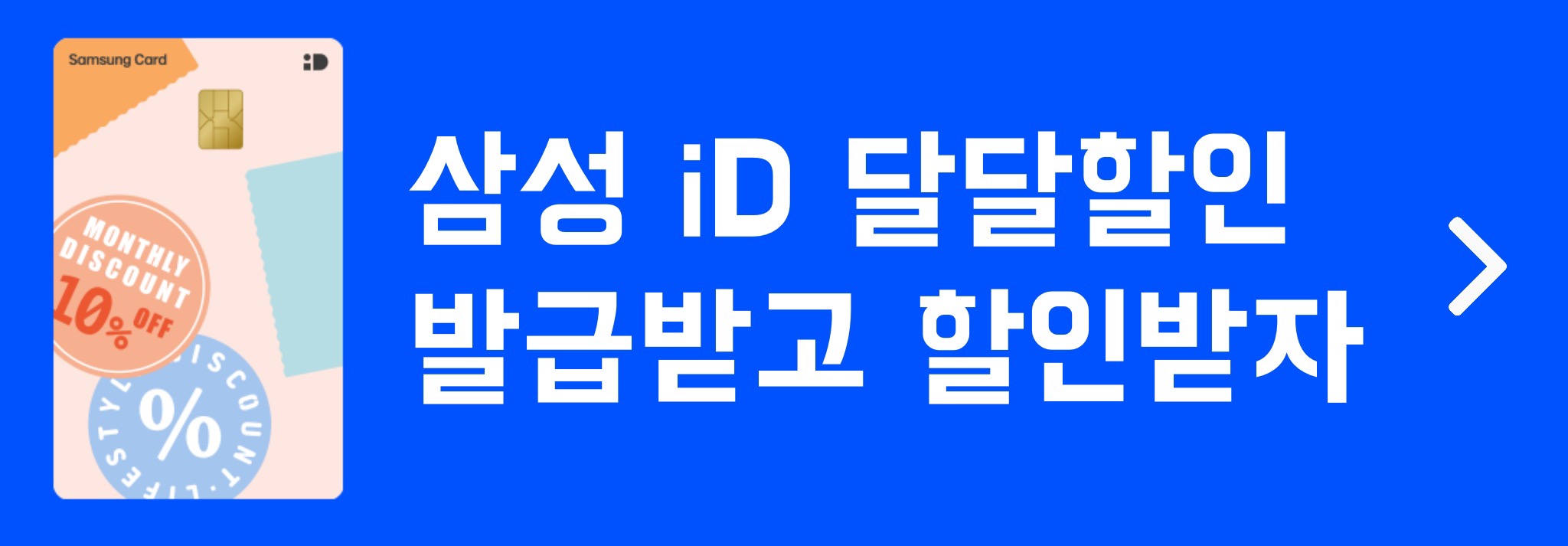 - iD 달달할인 삼성카드: 50%, 전월 실적 50만이용 시 5천원 할인