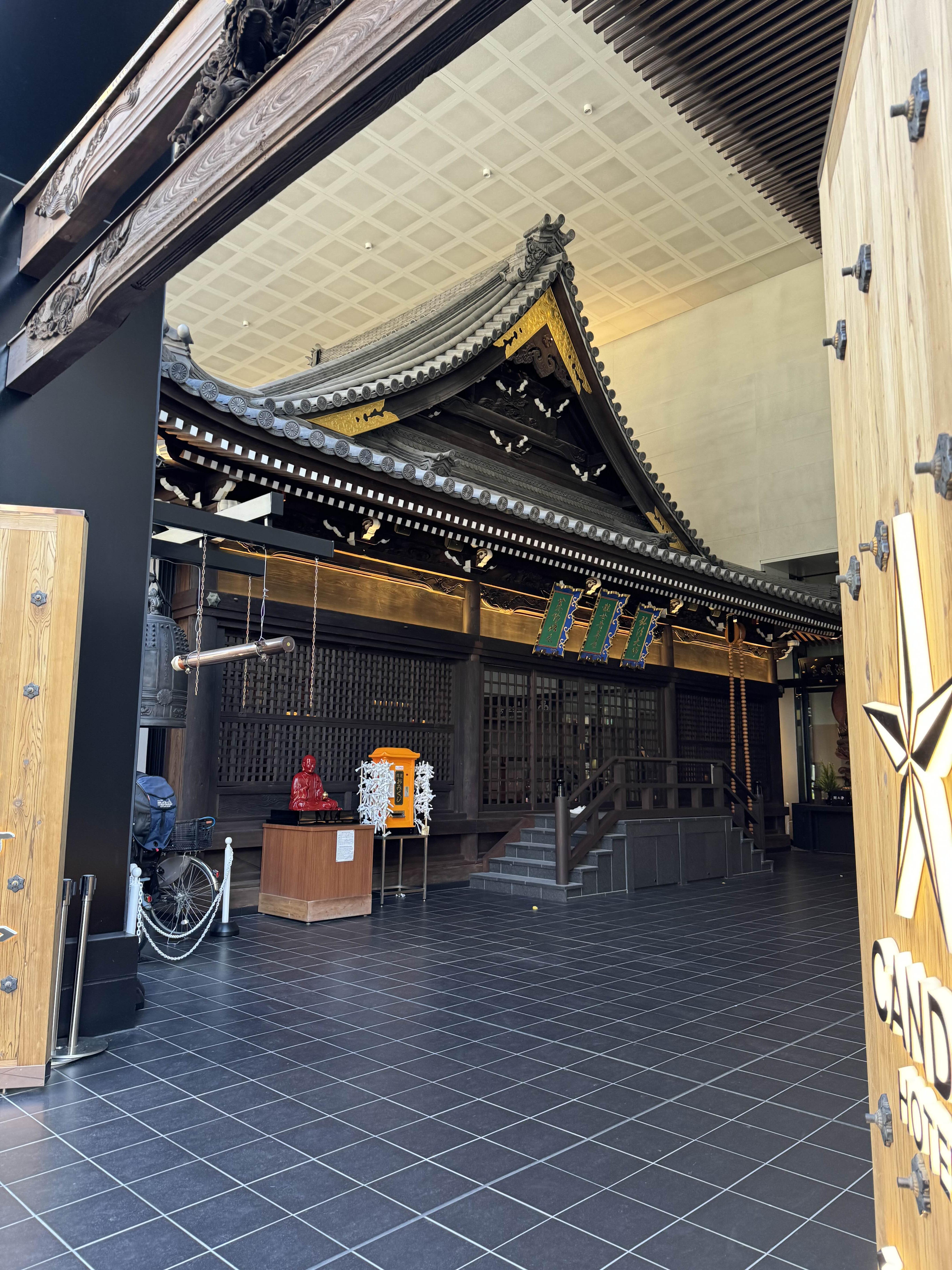 호텔 들어가는 입구 1층에는 미쓰테라 사원이 위치하고 있다. 사원과 호텔이 일체화된 모습으로 유니크한 감성이 돋보인다.