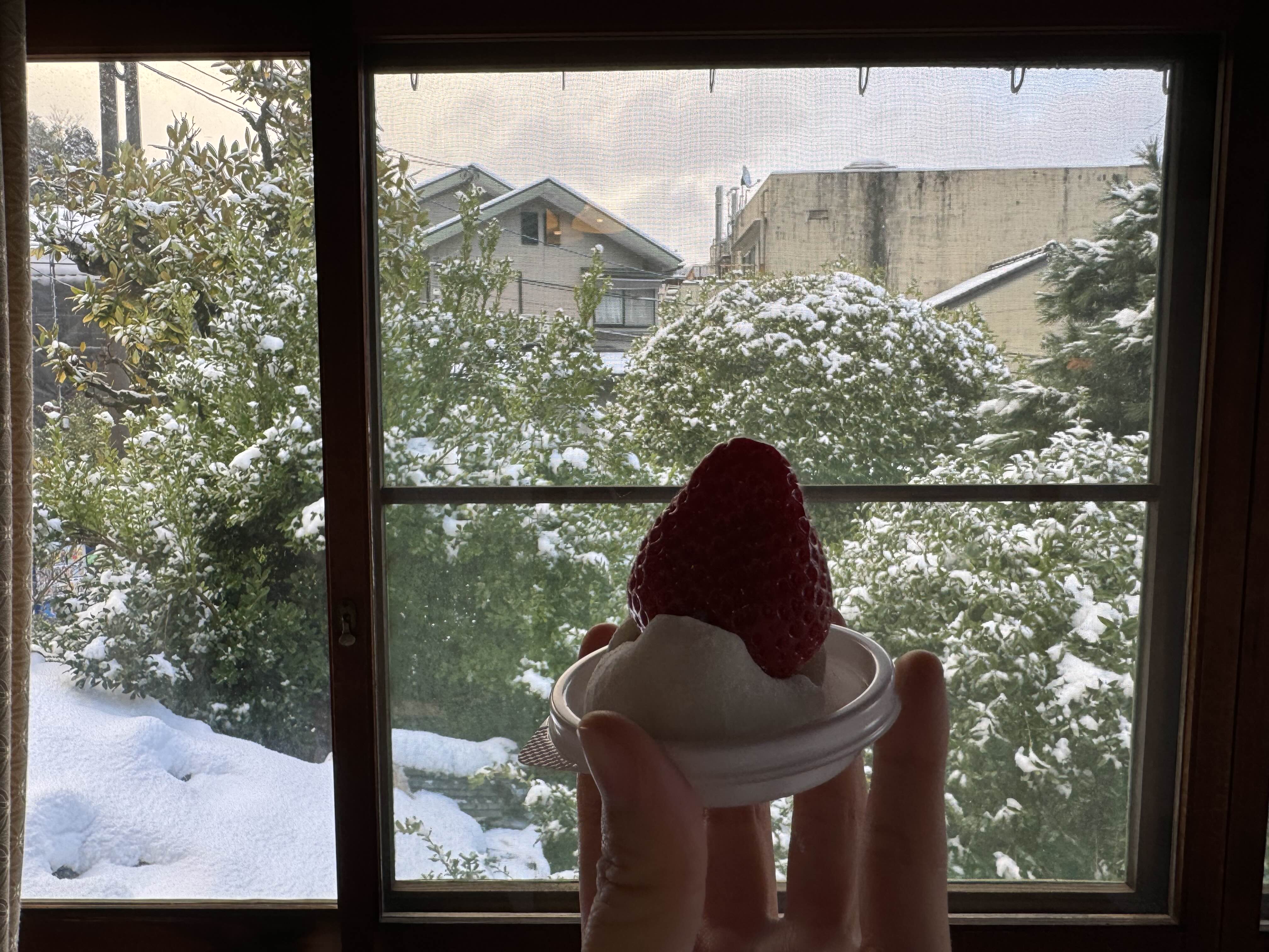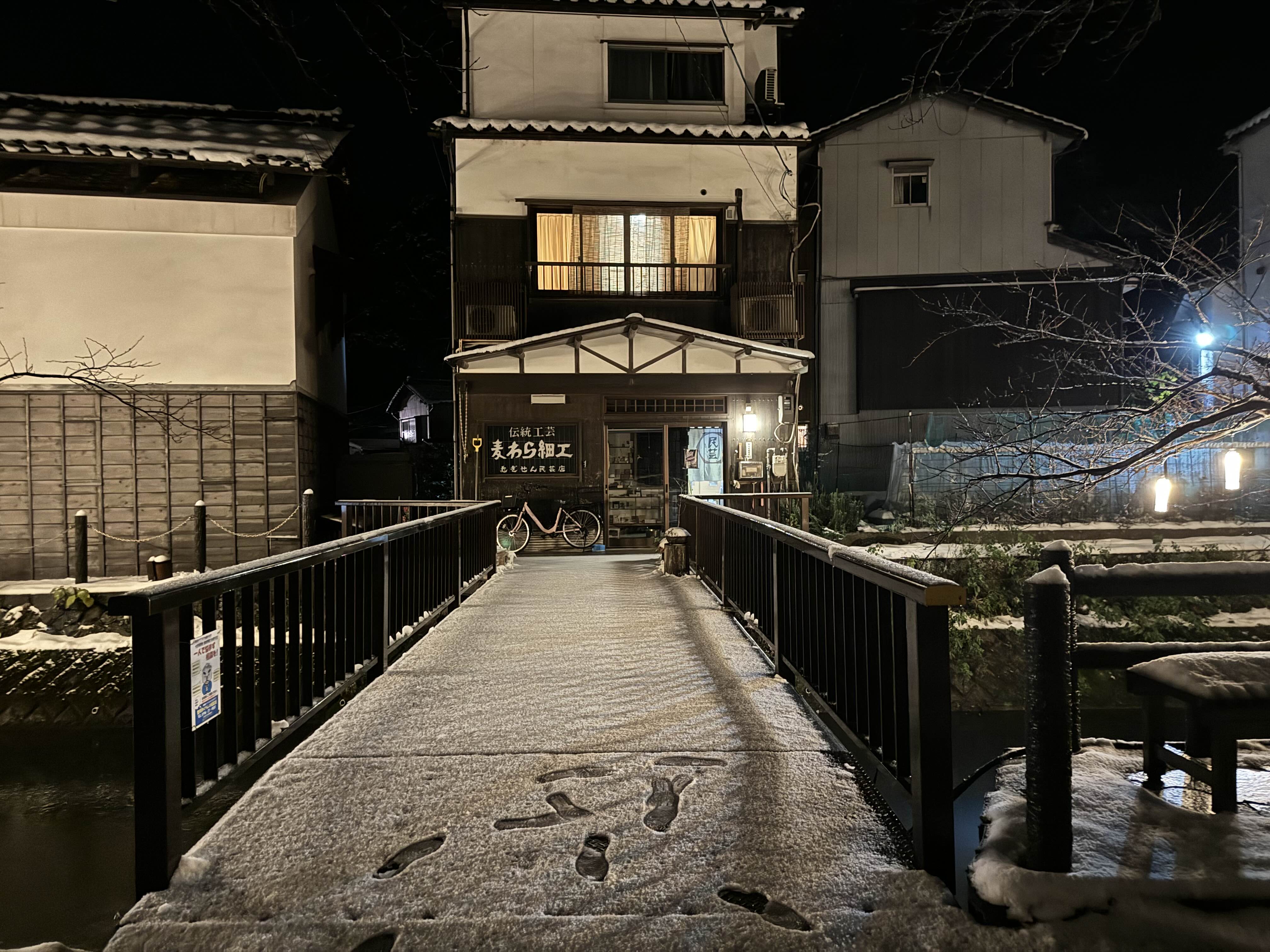 우리는 숙소에서 딸기모찌와 고로케를 먹고 유카타를 입고 온천갈 준비를 마쳤다. 딸기 모찌는 이 마을에서 유명한 디저트였는데 생각보다 맛있지는 않았다. 그냥 일반 모찌에 딸기 하나 올려 놓은 느낌이랄까, 찾아 먹지는 않을 맛이었다.