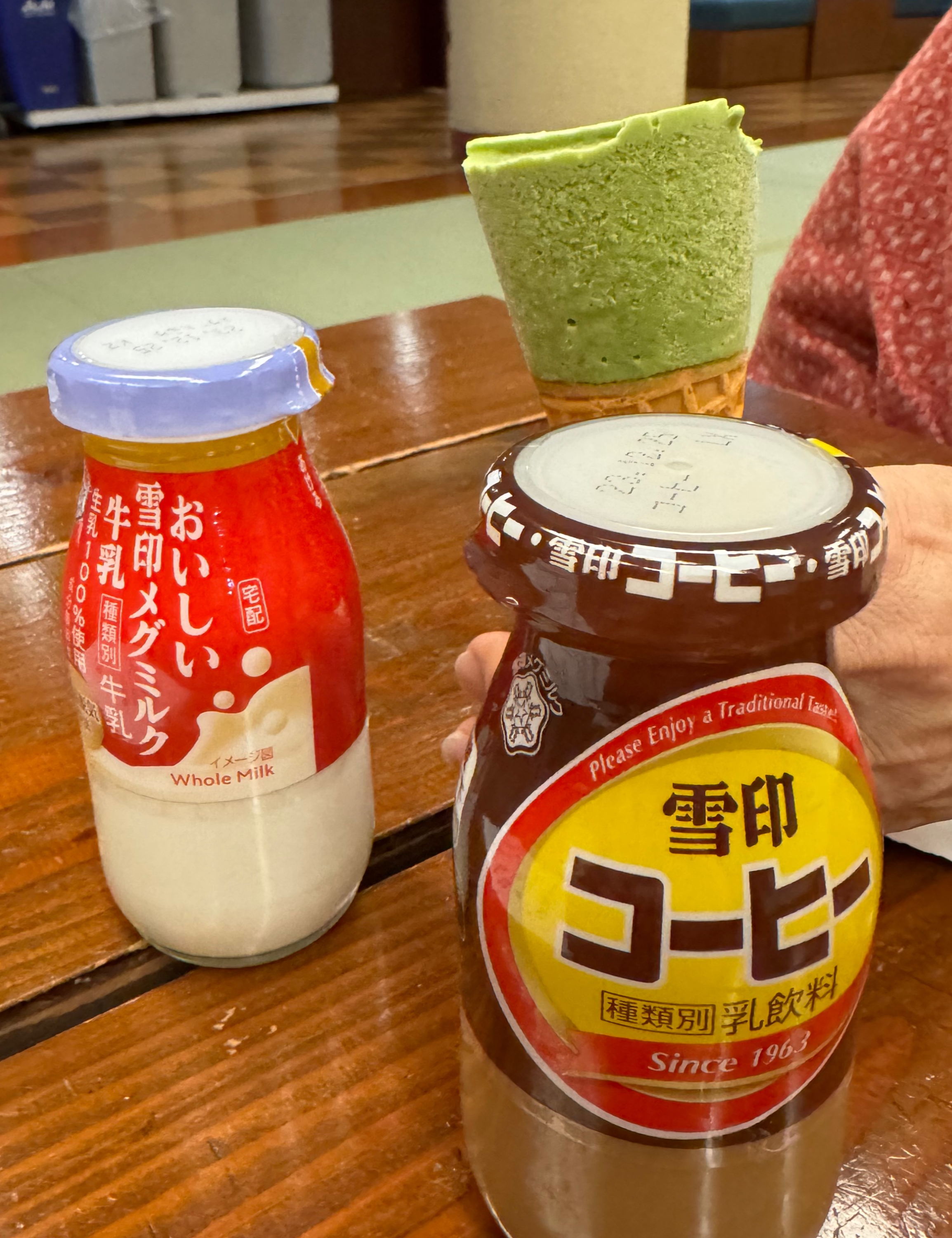 첫번째로 역 가까이에 있는 사토노유 온천을 방문했다. 역으로 가는 길에 상점도 둘러보려했는데 모두 문을 닫아있어서 어쩔 수 없이 온천으로 바로 들어갔다. 온천을 즐기고 나와서 일본 사람들처럼 병우유를 한잔씩 마셨다. 우유와 녹차 아이스크림을 먹으니 당이 충전되는 느낌이었다.