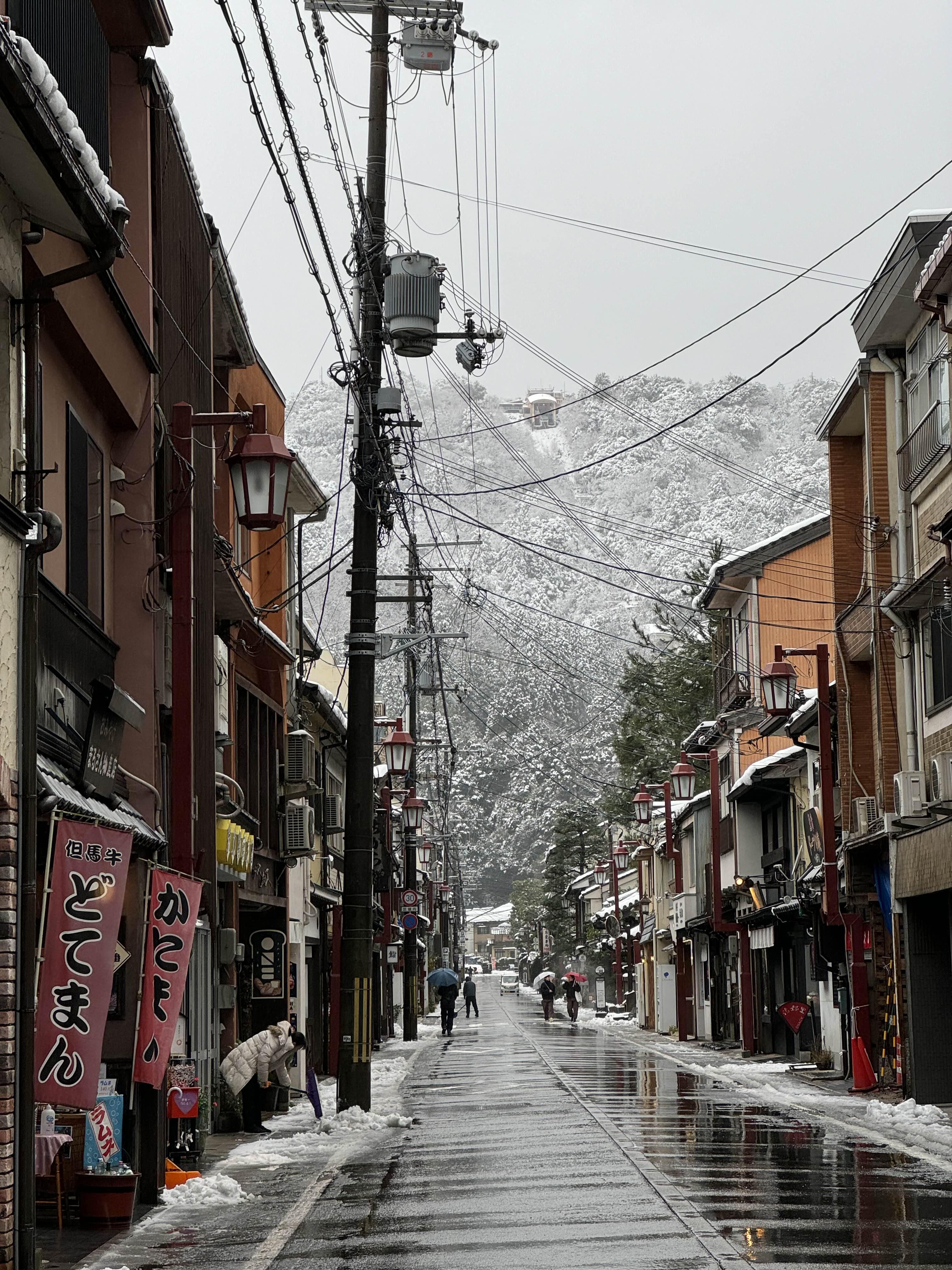 아침의 기노사키 온천 거리, 오전 8시경이엇는데 벌써 부지런히 가게 문을 여는 상점들이 보였다. 고쇼노유 온천을 마지막으로 짐을 챙겨 나왔다. 근처 식당에서 아침으로 오뎅을 먹고 기차를 타고 갈 준비를 마쳤다.