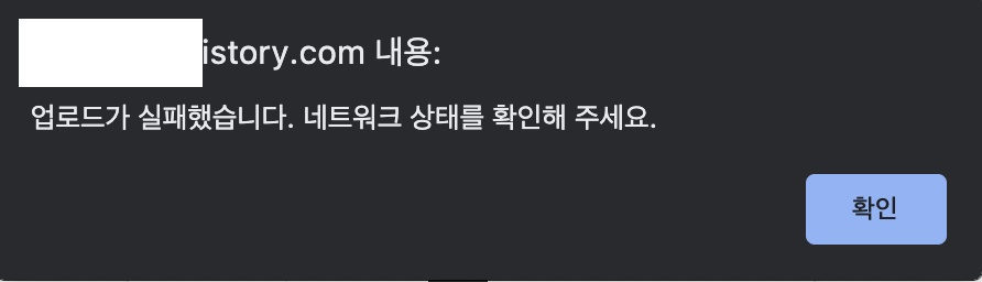이 오류는 티스토리에서 이미지나 사진 파일을 업로드하려고 할 때 발생하는 오류 메세지예요.