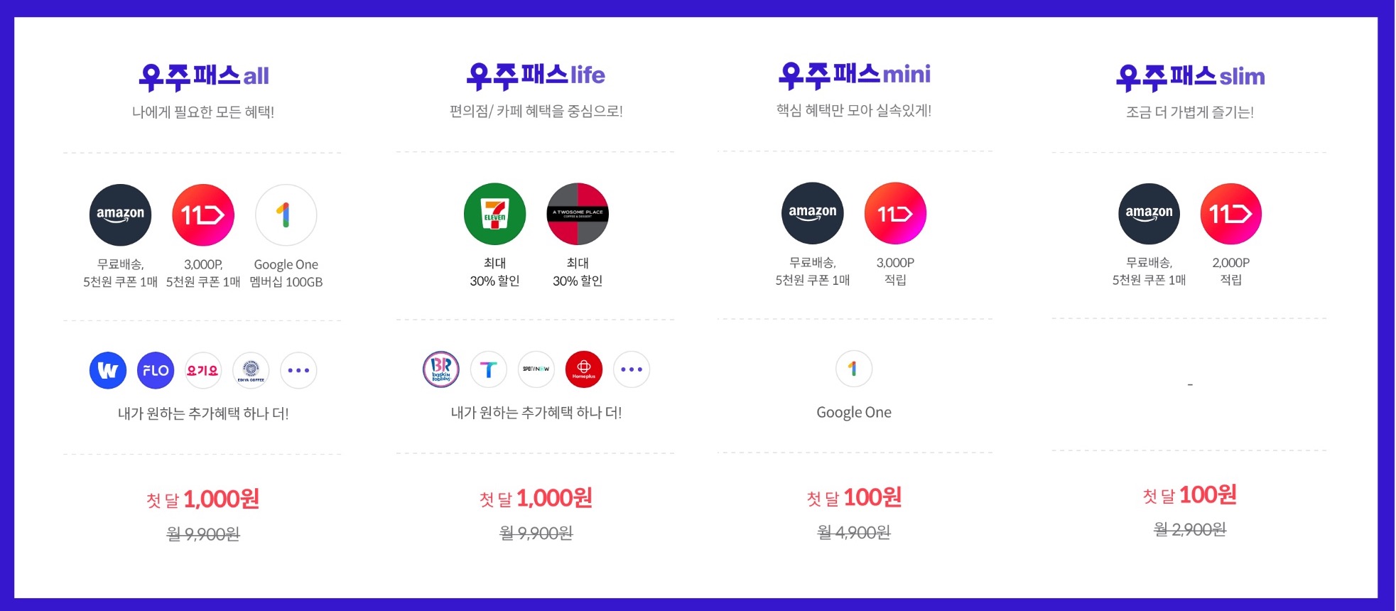 기본적으로 저는 우주패스 all과 life를 추천해요.