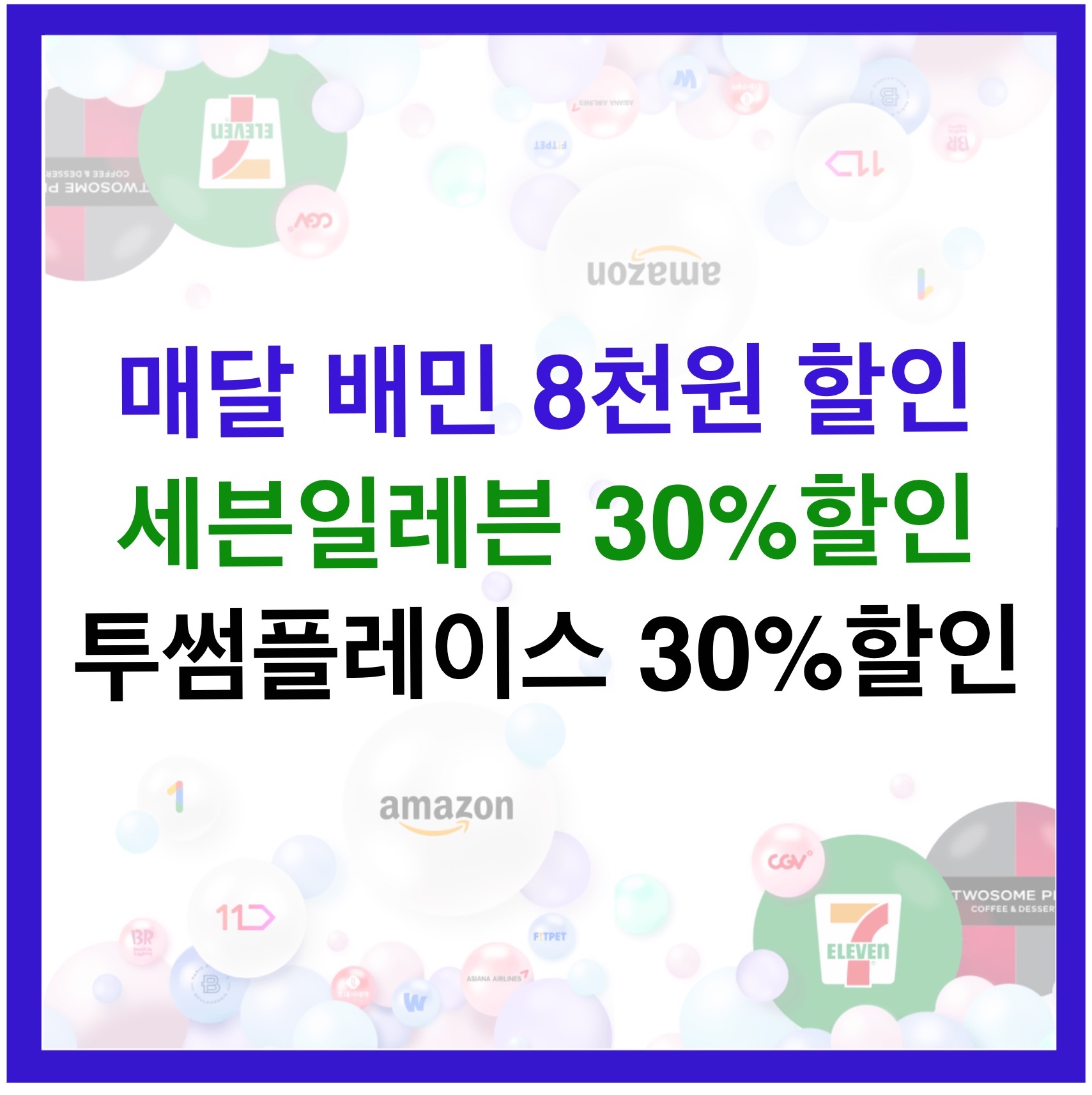 세븐일레븐 30%, 투썸플레이스 30% 할인도 진짜 최고니까요!!